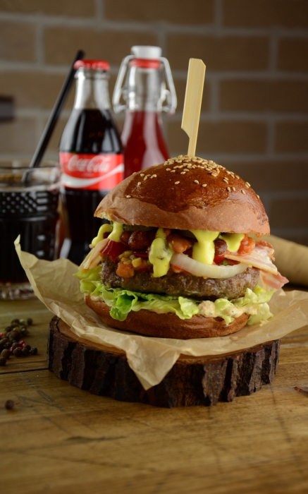 Меню: Гостям предлагают бургеры с бифштексом из мраморной говядины, классику с котлетой из курицы, баранины или рыбы и вегетарианский бургер на основе шницеля из печеной свеклы. Все позиции из этого раздела подаются с салатом коул-слоу, а булочки, белые или черные, выпекаются тут же в ресторане. В меню есть и традиционные для мясного ресторана блюда: классические салаты, свиные ребра на гриле, каре ягненка, крылышки BBQ и многое другое, без чего не могут обойтись подобные заведения.