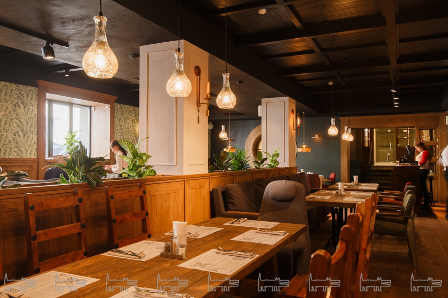 Новость о том, что за помещение на Дегтярной улице, много лет сдаваемое под общепит, возьмутся сами владельцы одноименных бань без опыта в больших ресторанных проектов, вызвало в индустрии нешуточную ажитацию: еще бы, эти стены помнят Михаила Долгополова с его высокохудожественным Skulptors и Арама Мнацаканова c его винным Simplebar. Уже можно констатировать, что вышло место со вкусом, отсутствия которого так все боялись — как к еде, так и к обстановке. С первого этажа даже изгнали дух предшественников — сделали свое архетипическое дело поленница и развешанные на крючках банные халаты. Однако на втором этаже, где осторожничали в стремлении сделать зал строже, за русскую самобытность отвечают только крайне деликатные орнаменты из дубовых листков — что, возможно, задумывалось как показательная интеллигентность, но ощущается как скородел.