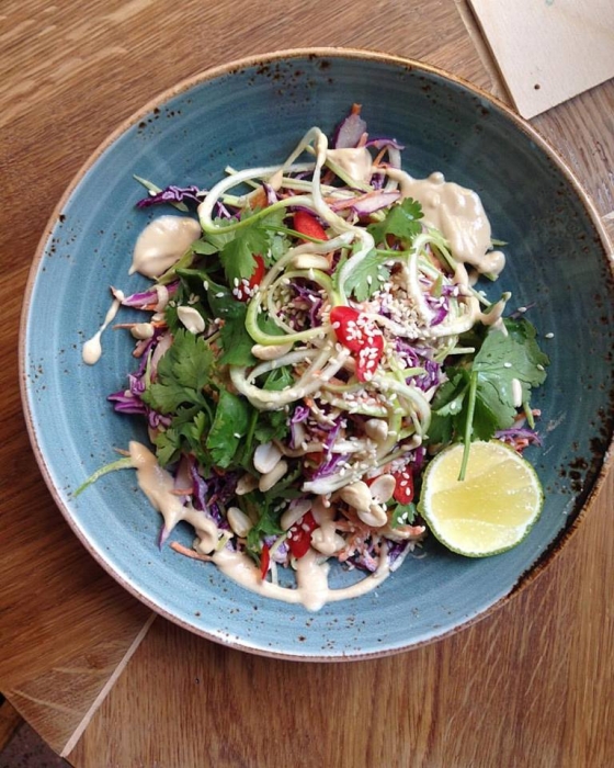На Большой Морской заработал кафетерий Shantaram Марии Кубэ. Этот проект вырос из одноименной службы доставки полезных тортов — без сахара, муки, яиц, молока и без печи, из орехов, сухофруктов, суперфудов, соков, а летом — из ягод и фруктов. Теперь их готовят в небольшом заведении — наряду с небольшим летним меню. В нем соки холодного отжима — например, зеленый микс из яблока, шпината, сельдерея, имбиря и зелени. Среди постоянных позиций — пад тай из моркови и красной капусты с проростками и арахисовым соусом, кабачковая паста с домашним соусом, томатные хлебцы с кунжутом и соленая карамель из фиников и кокосового масла.