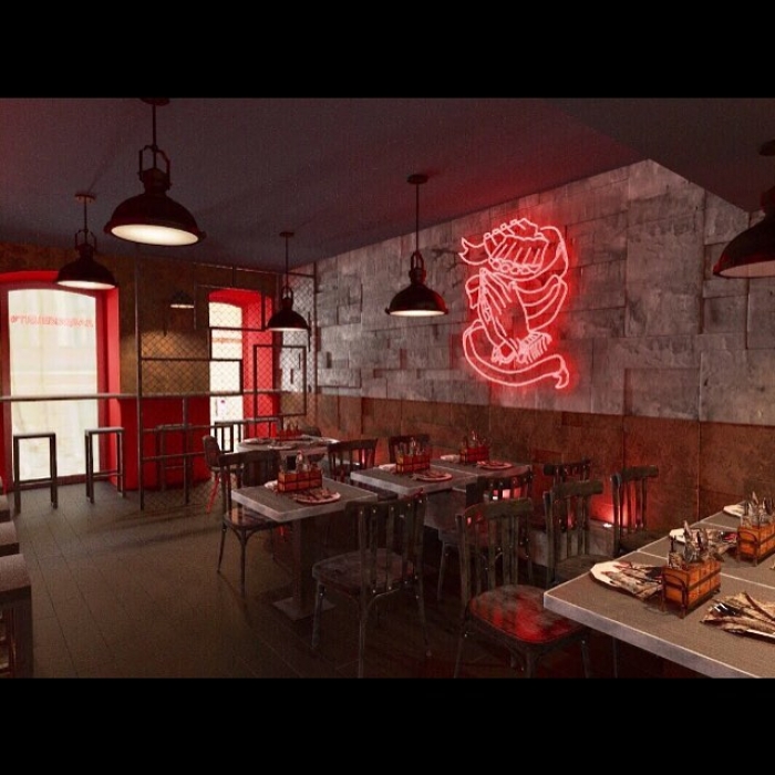 Созданием реберной Holy Ribs руководит команда митерии Chuck: Роман Лазарев, Юрий Чурилов и Александр Пушкарев. В меню войдут говяжьи и свиные ребра, легкие салаты в духе коул слоу, барные закуски и несколько видов бургеров. Коктейльную карту разработает Владимир Коврижных, бармен первого ресторана команды Redman's Kitchen. В нее включат как крепкие напитки, так и крафт. Дизайн предполагается такой же брутальный, как в Chuck: топорики на стене, необработанное дерево и металл. Новое заведение откроется в начале августа.