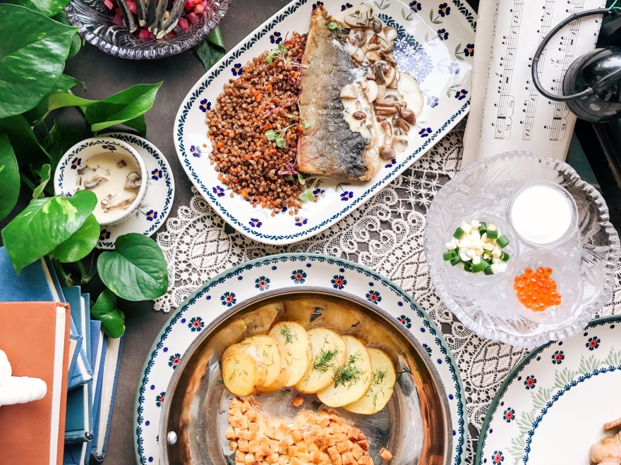 Ностальгический интерьер новых трех залов и балкона на месте бывшего ресторана Chin-Chin создавали в Megre Interiors: забранные павлопосадскими платками ширмы, ретробуфеты и приметы ушедшего времени ― пишущие машинки и абажуры ручной вязки. За меню отвечает шеф-повар Роман Васильев: в новом ресторане появились салат из томатов, авокадо и камчатского краба со сметаной, карпаччо из мяса лося с твердым сыром, соленья, малосольный омуль, рыбная кулебяка с копченой сметаной, блинчики с гречневой кашей и ливером, и лососевой икрой, а также гастрономическая лавка с выпечкой и десертами навынос. Также в ресторане будет музей с антуражем русской избы, медным самогонным аппаратом и настойкам собственного изготовления.
