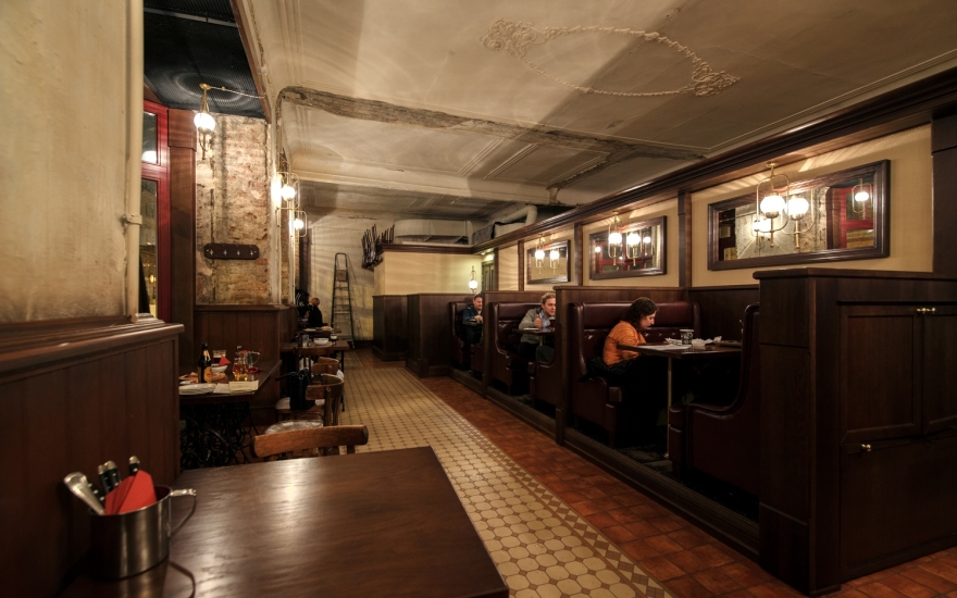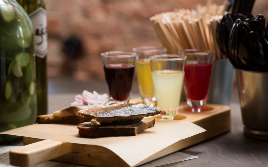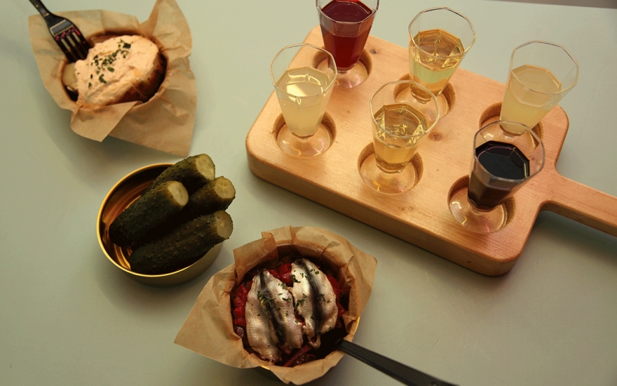 Команда «Рюмочной в Бутылке» на Новой Голландии и легендарного кафе «ПирОГИ» теперь на бутерброды, пельмени и настойки ждут на улице Некрасова, которая вполне догоняет Рубинштейна по наличию питейных. Закусывают здесь тремя видами бутербродов — со скумбрией, малосольной селедкой и паштетом из куриной печени (все по 100 рублей), винегретом с балтийской килькой, малосольными огурцами и солеными груздями с салом. Основательно можно подкрепиться запеченным картофелем с форшмаком или печенью трески и пельменями с бараниной или тыквой. В барной карте — семь видов настоек с хреном, свеклой, укропом, сельдереем, вишней, лимоном и малиной (все тоже по 100 рублей) и компактная подборка вина и крафтового пива.