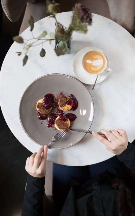 Заведение открыла выпускница кондитерского направления московской кулинарной школы Ragout Ангелина Попикова. Формат хозяйка определяет как кафе, где авторская кухня соединяется с концепцией «на каждый день». Придумал большинство блюд Антон Абрезов, а с позицией шеф-повара справляется протеже и коллега Антона по ресторану Gras Иван Негутаров. Завтраки действуют по будням и в уикенд в течение всего дня: в их меню — омлет со страчателлой и вялеными томатами, гранола с миндальным молоком, овсянка и яйца с топпингами на выбор, хашбраун с копчёной сметаной и оладьи с тимьяном, мёдом и лимонной сметаной. В основном меню — салат с индейкой, грушей и кольраби, тыквенный суп с хурмой и копчёным тофу, утиная грудка с сельдереем и маринованным яблоком и филе-миньон с пюре из сезонных овощей.