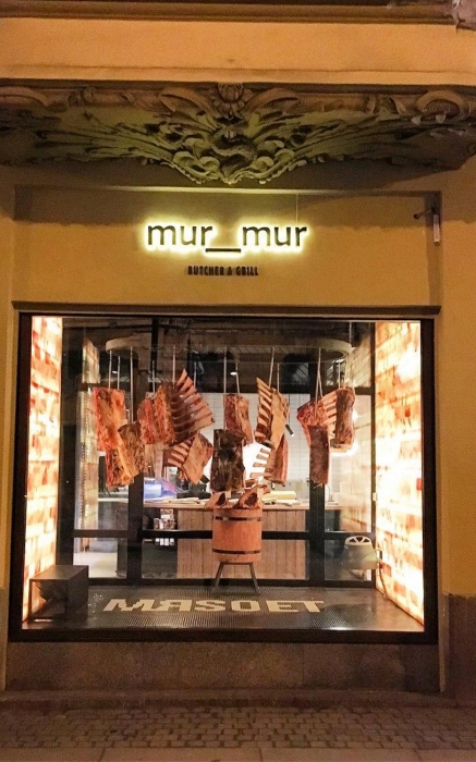 На главной ресторанной улице города заработал мясной ресторан Mur_Mur. Создателем проекта стал Мурат Расимгиль, автор лавки-бургерной «Mяsoet» и друг мясника Нусрета Гекче, известного по своему фирменному способу приготовления стейков и эффектному взмаху руки, которой он солит мясо. Подражая Гекче, повара-мясники заведения на открытой кухне жарят мясо, попутно эпатируя публику необычной подачей. Не смотря на миловидное название проекта, ресторан получился брутальным: инкрустированная в витрину камера сухого вызревания мяса и сочетание камня и дерева в интерьере. Меню исключительно мясное: например, стейк Нью-Йорк (890 руб.) или томагавк (2700 за килограмм). Всего представлено три вида отрубов, а мясо для них закупается на фермах Ленобласти.