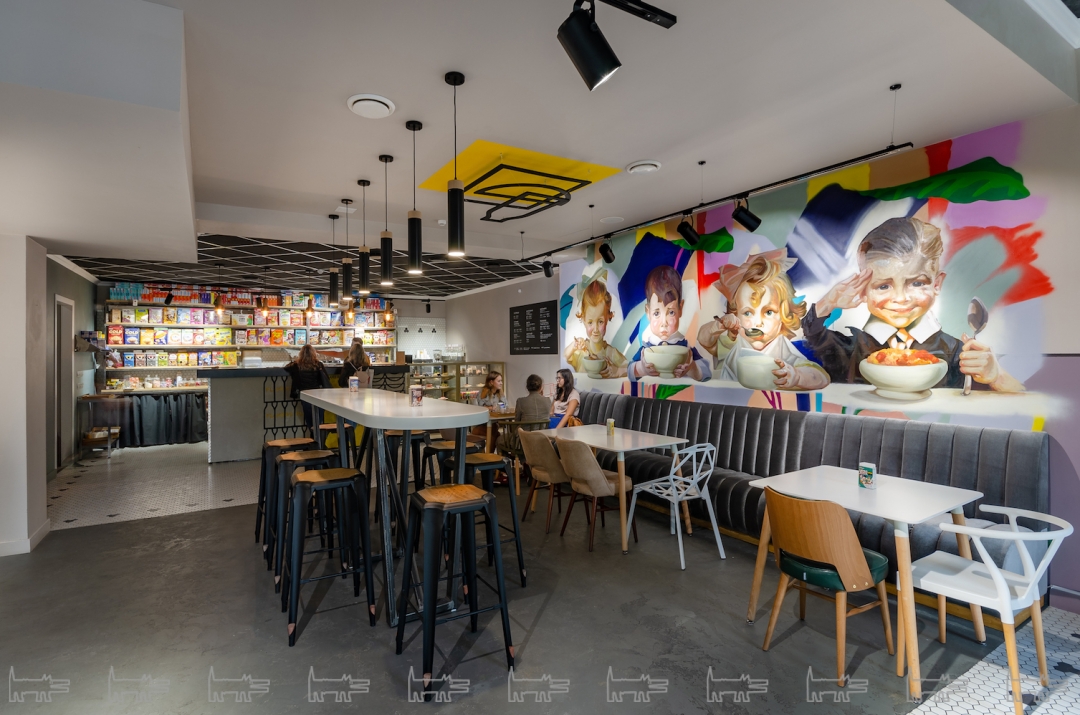 На стенах граффити с детьми из первой рекламы хлопьев в мире – Toasted Corn Flakes, которая появилась в американских изданиях в 1910-е годы.