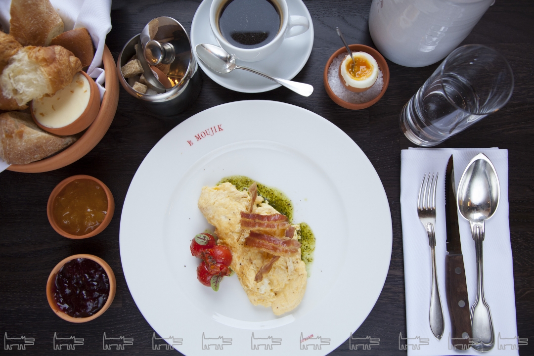 И совсем романтическая история — ранние, с 8 утра, завтраки с крок-мадам и крок-месье, pain perdu с творогом, чиа-пудингом, омлетами, яйцами бенедикт со шпинатом, черносмородиново-яблочным смузи и какао в больших чашках. По будням завтраки обещают длиться до двенадцати a.m., по выходным — до шести вечера. Открытия придется пару дней подождать; первый день работы Bistrot Le Moujik в воскресенье, 14 октября, с двух дня. С понедельника работают по полной обещанной программе.