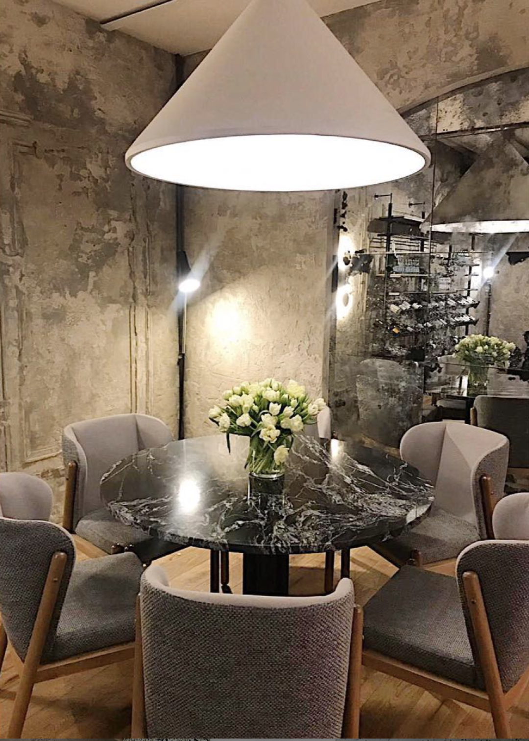 Европейская кухня с казахскими акцентами на улице Рубинштейна. Баурсаки – жаренное в масле тесто, традиционное блюдо для многих народов Центральной Азии – адаптировали под местные вкусы и сделали нежными на манер французских булочек, к вину подают не только артишоки и сыры, но и вяленую конину – уложенную тонкими слайсами на томатный хлеб, – ее доставляют в Петербург самолетами из Казахстана.