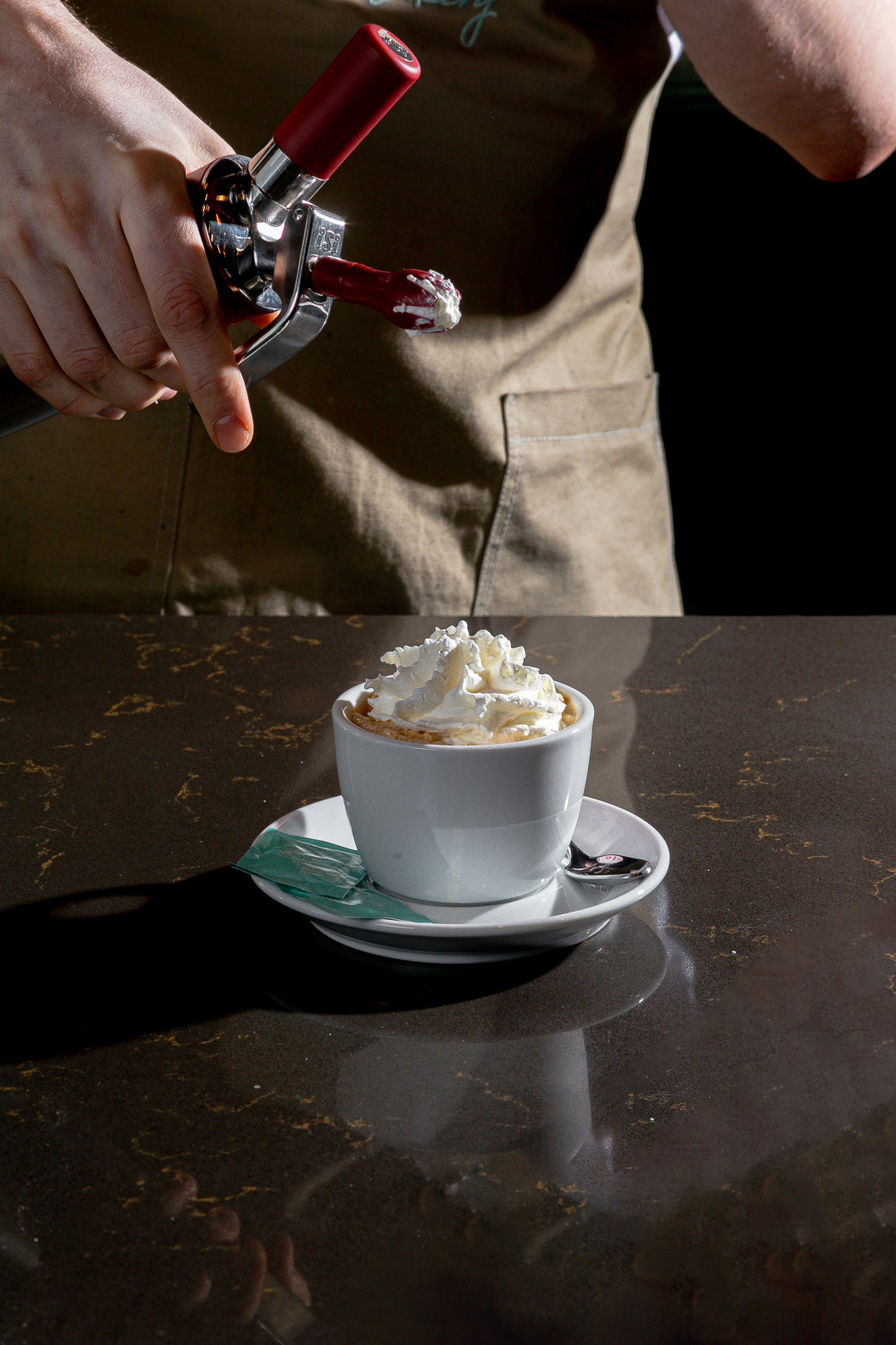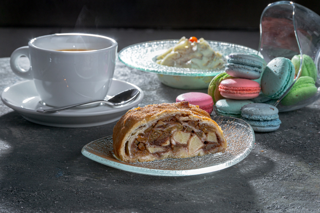 Вся представленная в кофейне продукция изготавливается на собственной фабрике Kroo Cafe. Причем некоторые десерты сделаны под руководством французского мастера Лорана Морено. Здесь подают штрудели, киши, круассаны, булочки шу и пирожки. Особое внимание команда уделила сервировке кофе: в пару к напитку посетителям приносят блюдце со взбитыми сливками.