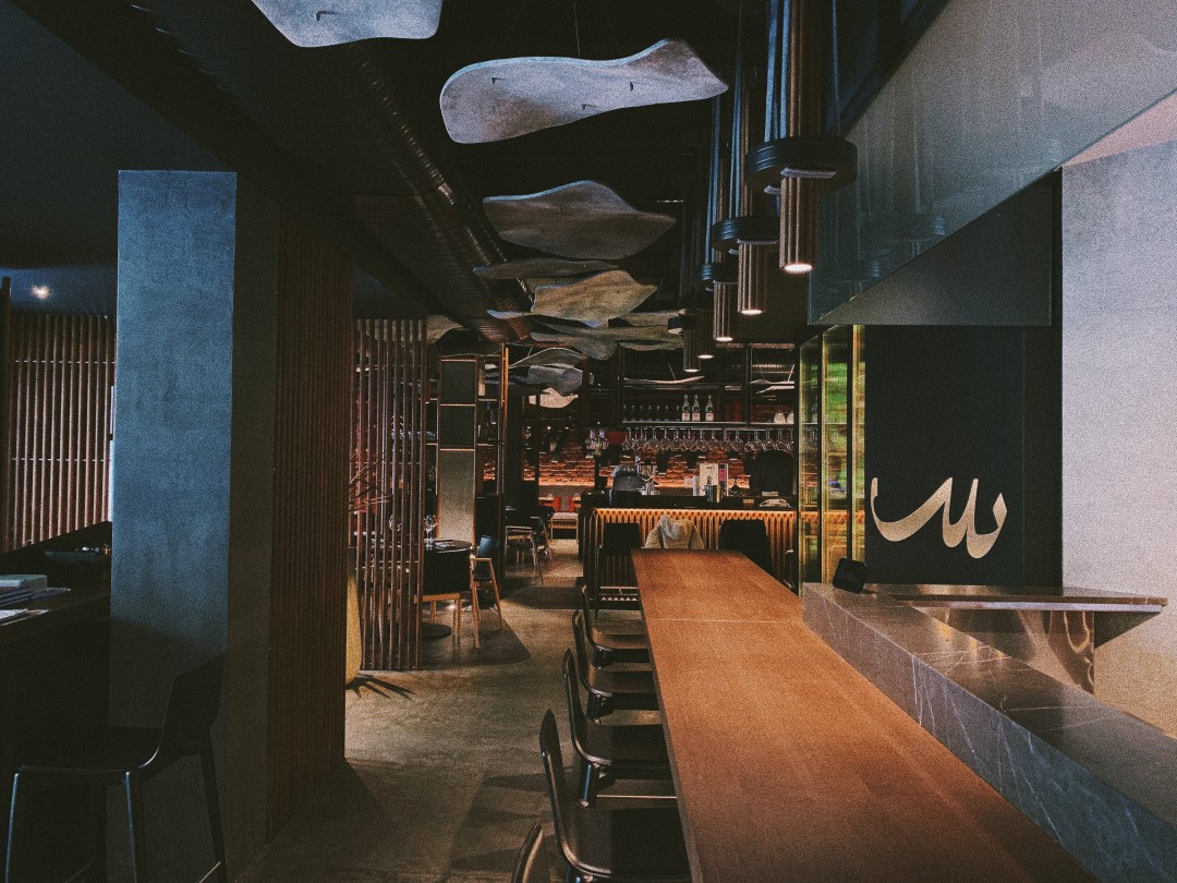 В ресторане три зала, рассчитанных на 150 посадочных мест. Ставку дизайнеры сделали на сочетание натуральных материалов – в частности, дерева и живой зелени – с металлом и камнем.