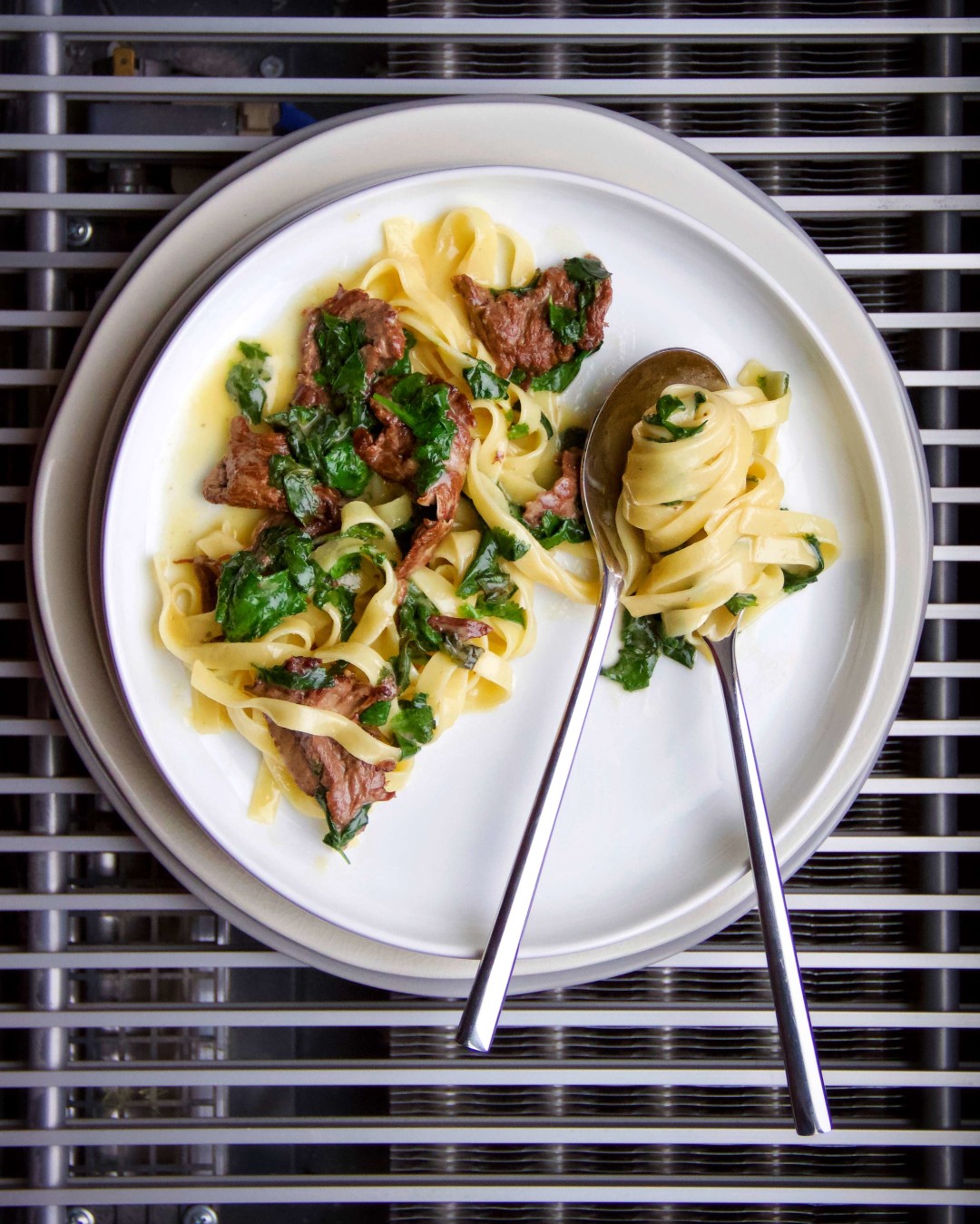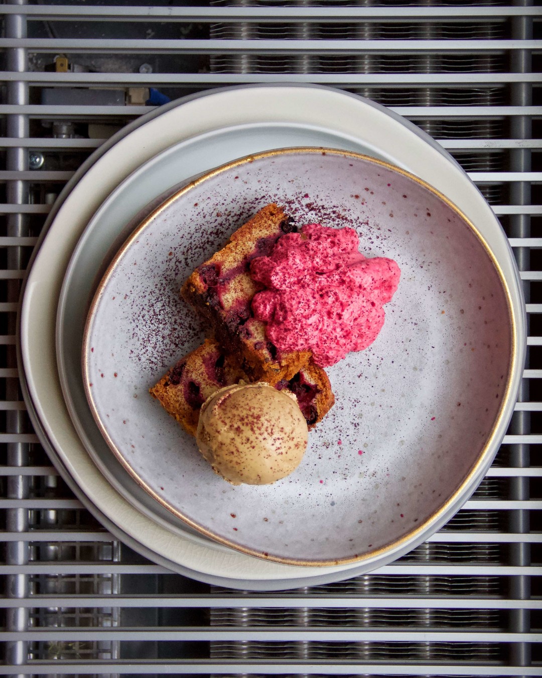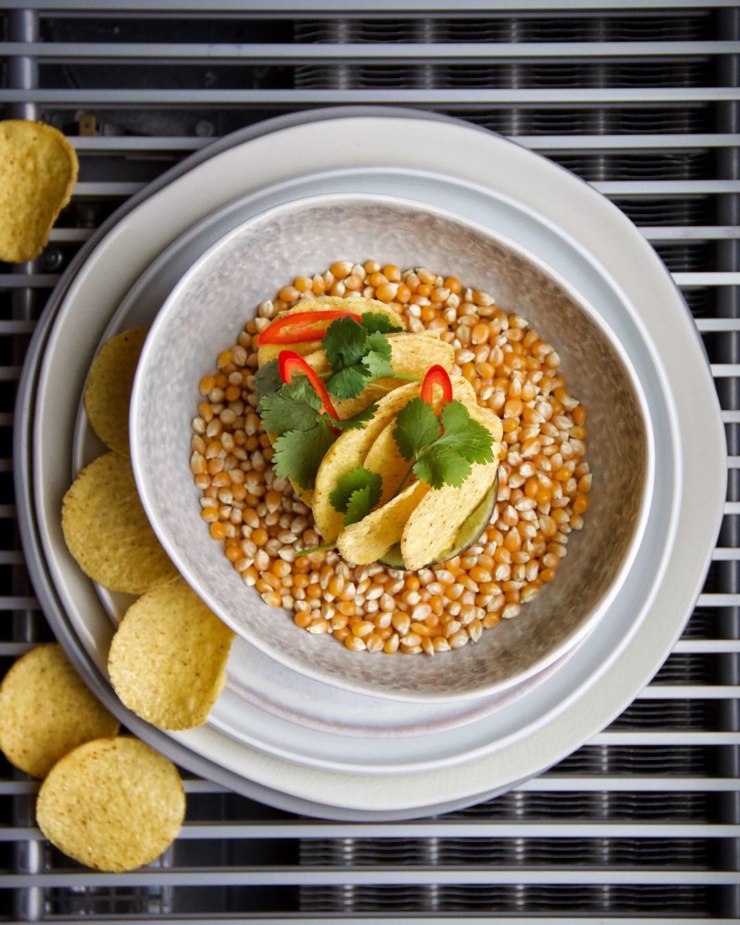 Ресторанная часть проекта предполагает еду в формате comfort food на стыке традиций Европы и Азии. Меню обещают сделать нескучным. Подают вегетарианскую интерпретацию салата «Цезарь», орзо с креветками и апельсином, а севиче из дорадо готовят с маринованными томатами. Также в меню – поке с лососем и соусом мисо, утиная грудка бань ми с луковым пюре и фланк-стейк с копченым баклажаном.