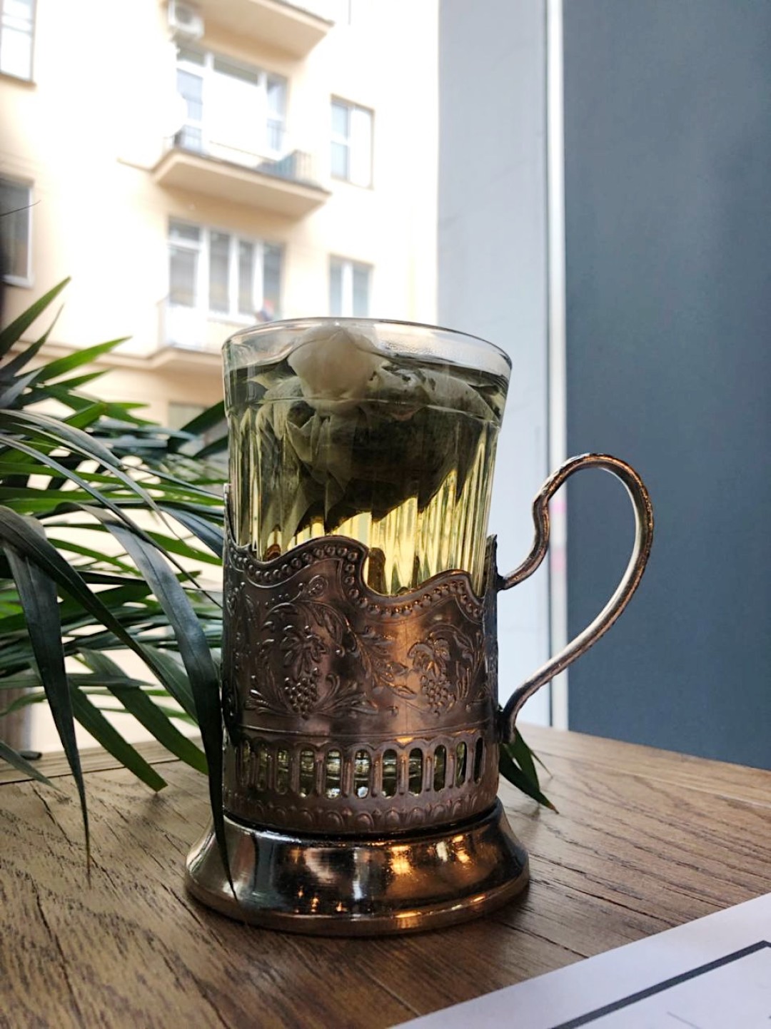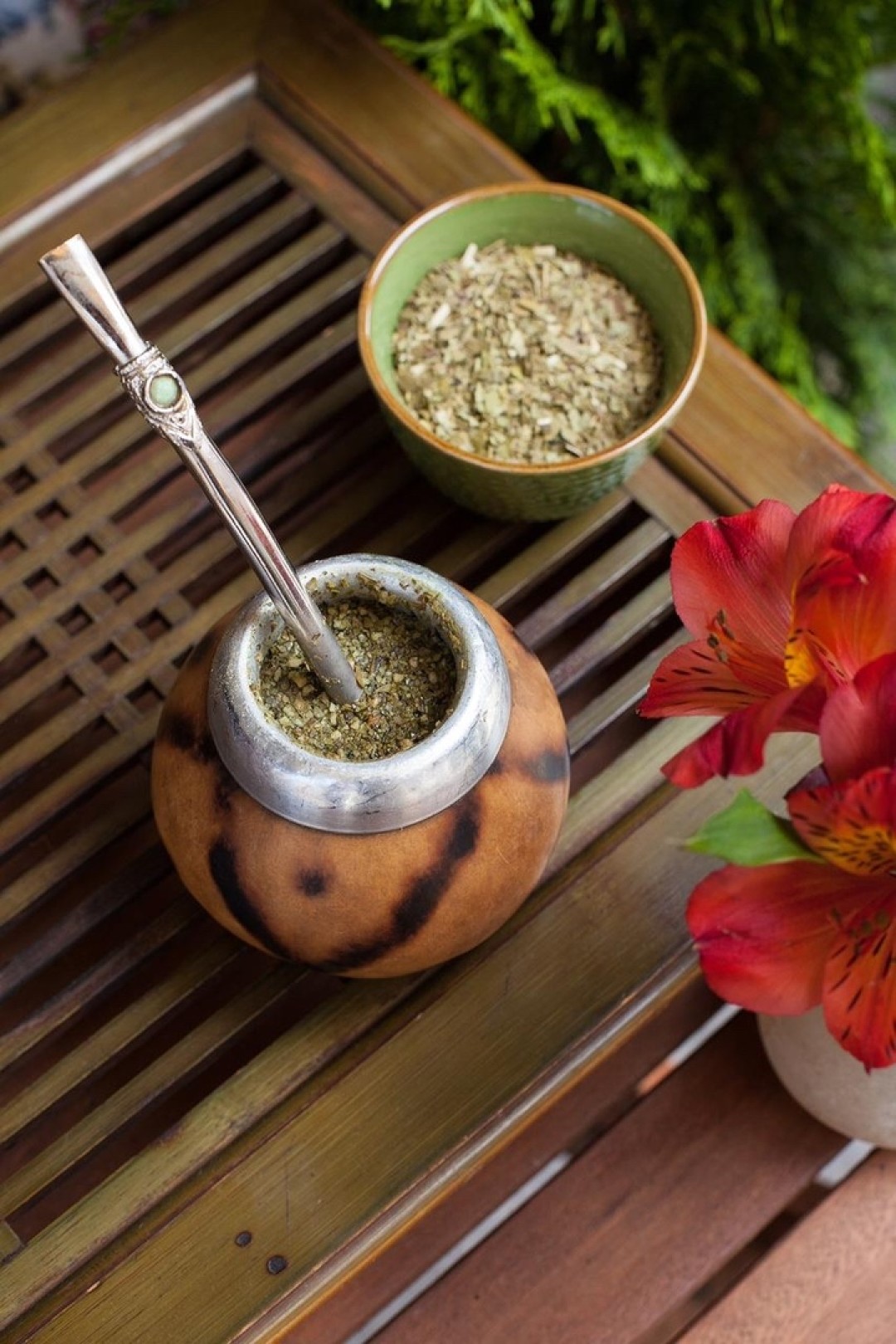 Кафе «Фрида» вдумчиво относится к чаю и чайным церемониям (Чайный Дом на Рубинштейна — их проект). Здесь можно попробовать мате, который сейчас редко где подают и редко где делают это правильно: с калабасом (в нем заваривают) и бомбильей (через нее пьют). Напиток из листьев вечнозеленого парагвайского падуба отличается высоким содержанием кофеина и своеобразным табачным привкусом.