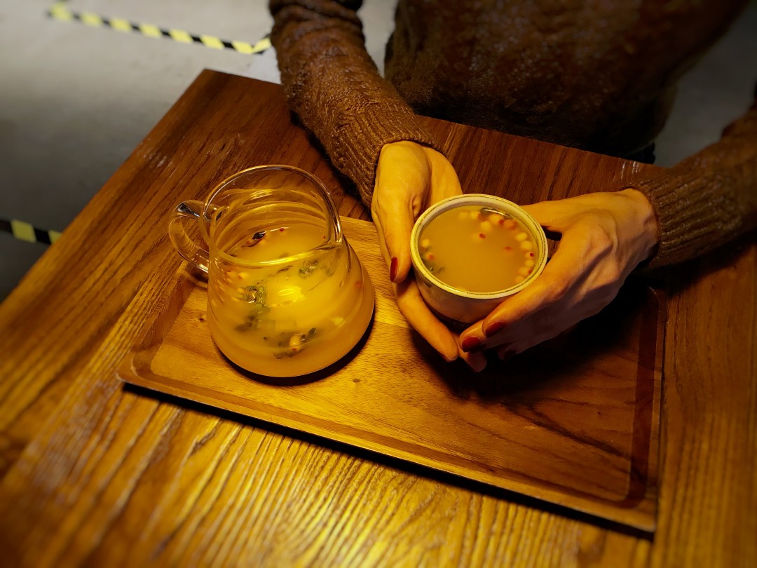 Бодрить и тонизировать – это про тимьян. В кофейне Sibaristica на Обводном канале экспериментируют и с приготовлением кофе, и с напитками без кофеина. Чай облепиха-тимьян готовят на основе иван-чая и домашнего соуса. Для него варят облепиху и имбирь, затем соус протирают через сито. При подаче в чайнике соединяют соус, чай, добавляют алтайский мед для сладости, веточку тимьяна и ягоды облепихи.