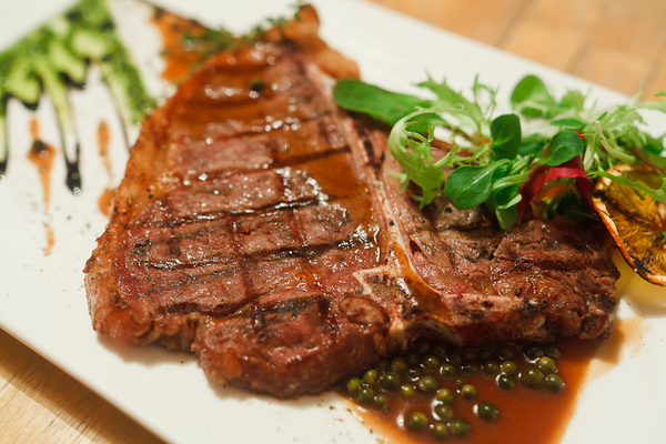 Неделя специальных блюд в ресторане «Паруса» с 23 февраля до 7 марта продолжится приуроченным ко Дню защитника Отечества особым предложением шеф-повара Игоря Корнева. Настоящее мужское блюдо — сочный Тибон-стейк из большого куска австралийской мраморной говядины, включающий в себя сразу вырезку и стриплон. Стейк обжаривается на древесном угле в закрытой печи-хоспере, и приправляется соусом Green pepper, на основе демигляса и пряного зеленого перца. Стоит это королевское блюдо всего 1200 рублей.