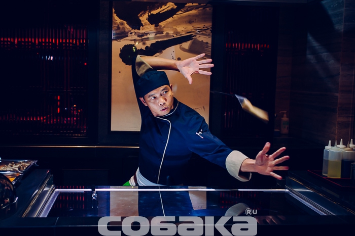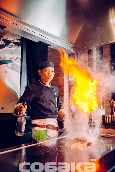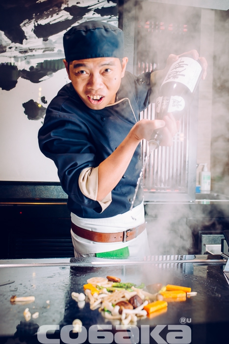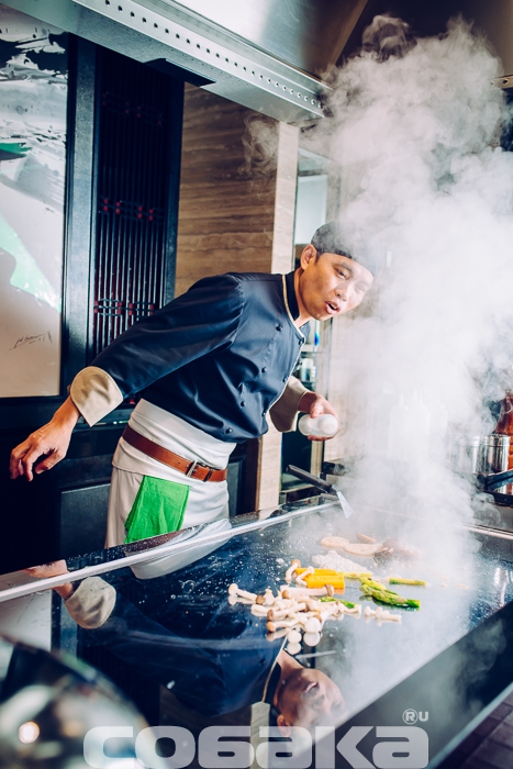 Тепаньяки — это и кулинарное шоу, и метод приготовления еды, и способ рассадки. Название произошло от слов «теппан» - лист железа и « яки» — гриль или жареный. Иными словами это традиция обжаривать на раскаленной поверхности продукты перед гостями. Обычно эта поверхность является продолжением стола. Незамысловатый по технологии процесс готовки мастера обычно оживляют настоящим перфомансом — они делают трюки, жонглируют и чуть ли не фокусы показывают. За работой мастера тепана больше всего похожи на харизматичных убийц-азиатов из фильмов про Джеймса Бонда. Летают ножи и тесаки, вспыхивает пламя, клубится дым, гремят банки с приправами, повар чуть ли не свистит в такт своим движениям — и вот у тебя на тарелке хрустящий брусок морковки, росток спаржи, ломтик тунца или министейк. За большим столом — на восемь-десять человек — как правило, оказываются незнакомые люди. Так что шоу — это еще и повод для разговоров, и просто молча и восхищенно понаблюдать можно.