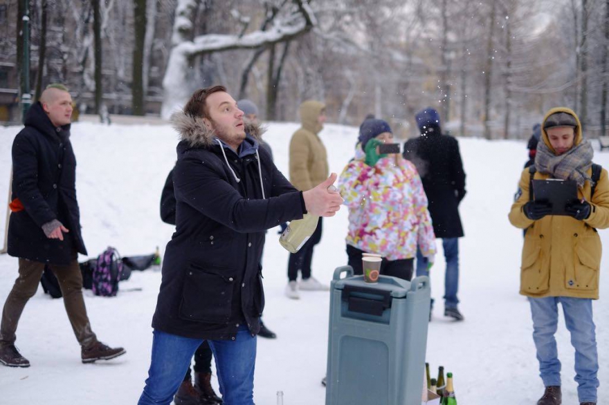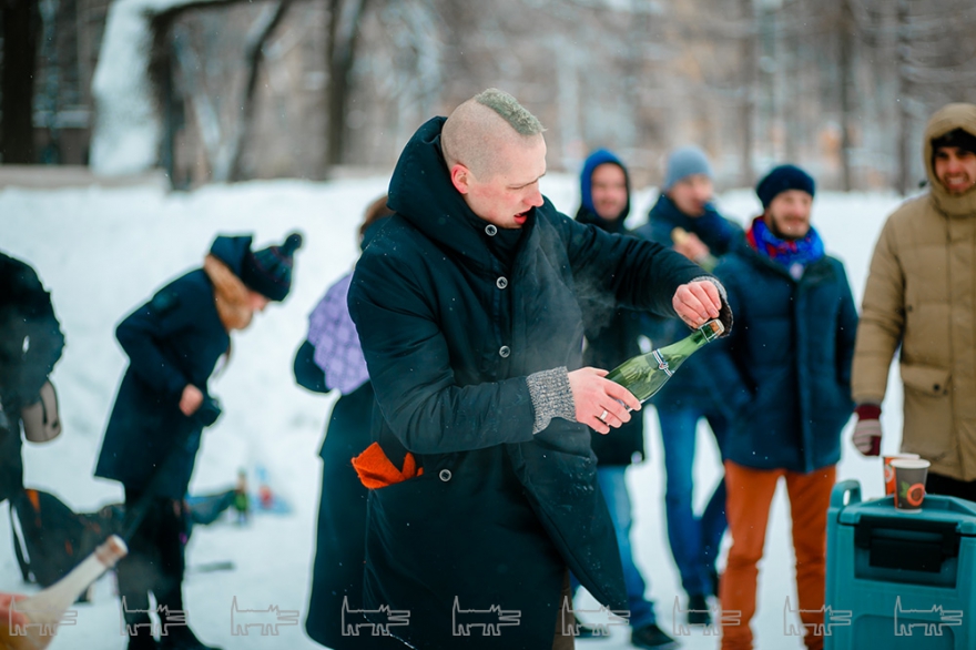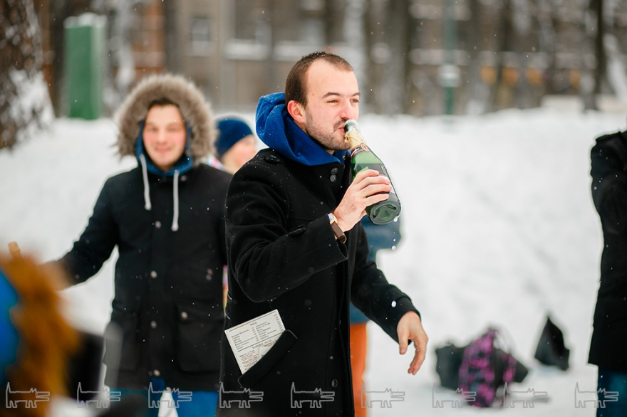 Этот чемпионат в очередной раз доказал нам, что деревянная пробка всегда лучше пластмассовой — эти вообще не хотели летать. Стрелять в такую погоду холодным шампанским оказалось непростой задачей, поэтому по ходу соревнования мы на собственном опыте проверили много разных вариантов. Всеми любимый способ — потрясти бутылку — в такую погоду не особо пригодился. Но постучать об дерево — сработало, правда, один раз бутылку просто разорвало на мелкие части от моего старания. И обязательно максимально долго удерживайте пробку, совершая при этом взбалтывающие движения. Да, и не забывайте о правилах безопасности! Отсутствие потолка не лишает вас шанса пробить что-нибудь даже на открытой местности».