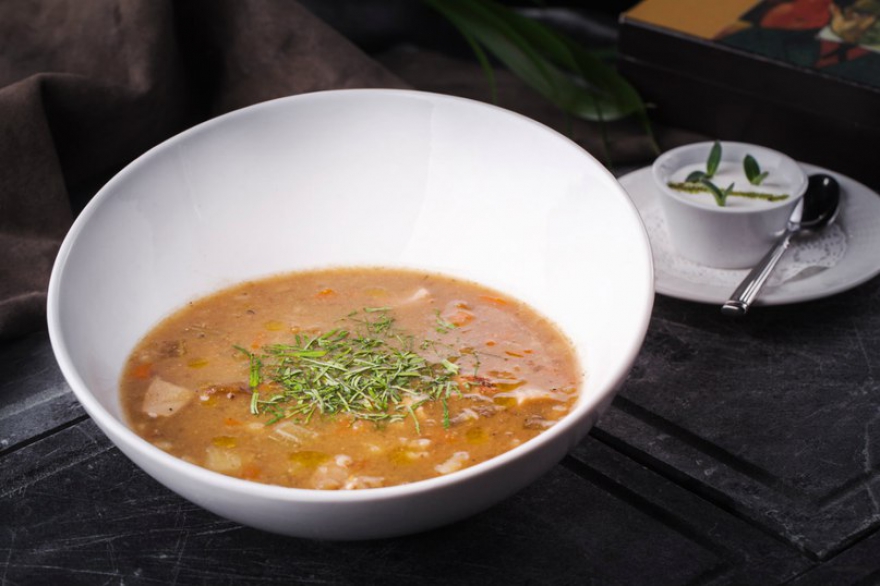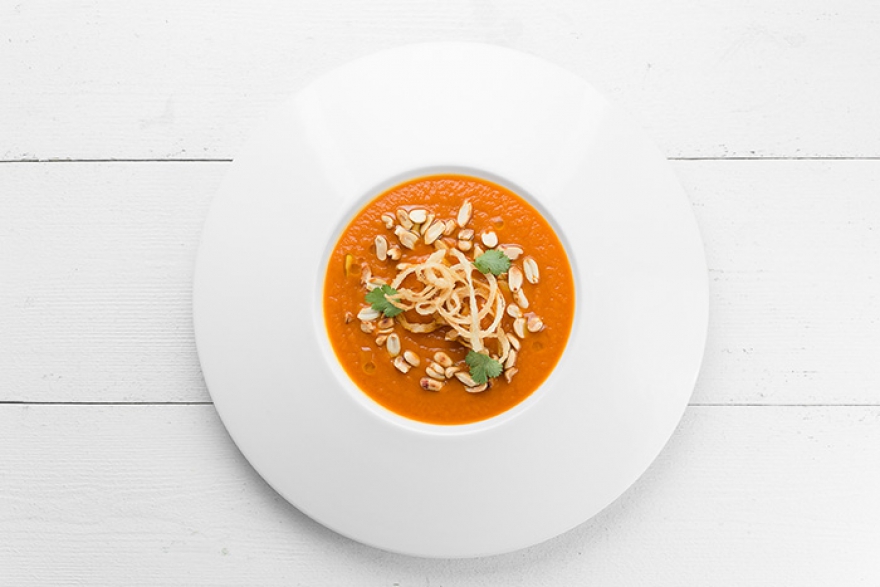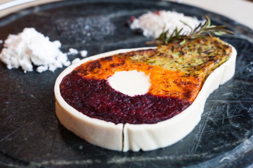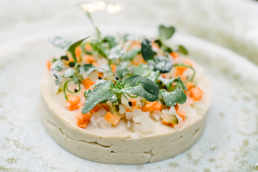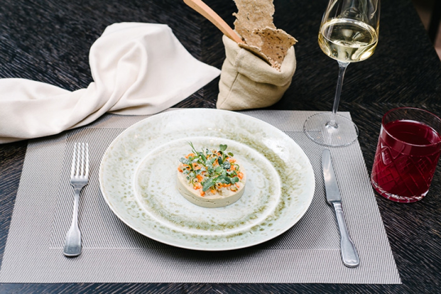 В только что открывшемся в отеле W «Кококо» найдутся блюда без продуктов животного происхождения, но от этого они не менее эффектные. «Гороховый кисель» на манер хумуса с хрустящими хлебцами из семян льна — это вариация на русский кисель и ближневосточный хумус. Технологии приготовления и ингредиенты в них похожи: вместо разваренного нута — горох, вместо кунжутной пасты тахини — паста из жареных семечек. Дополняют блюдо маринованные овощи, ароматное подсолнечное масло с кориандром и тмином и хрустящие хлебцы из семян льна, из которых нужно сооружать мини-сендвичи. Еще одна постная позиция — холодный суп «Винегрет» и ржаные булочки: знакомое блюдо меняет консистенцию и превращается из салата в суп, не потеряв при этом ни один из знаковых ингредиентов. Холодный суп-пюре из печёной свеклы приправлен ароматным огуречным рассолом, сушёной черной смородиной и нерафинированным растительным маслом. В тарелке — гарнир из маринованного лука, слайсов соленого огурца, сочной зелени и снега из сметаны, настоянной на корне хрена. На закуску — булочки из ржаной муки.