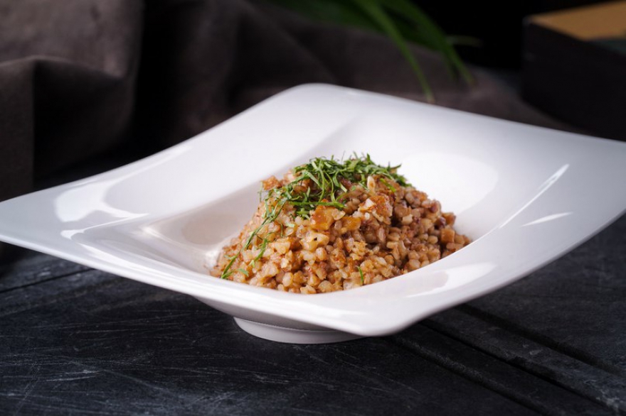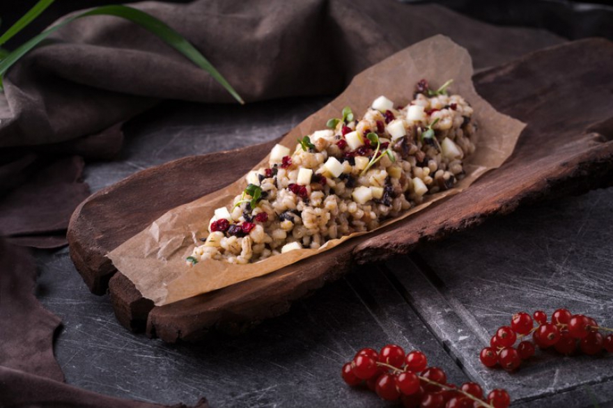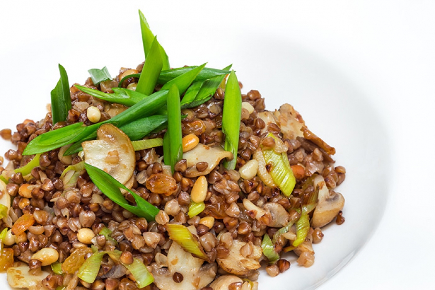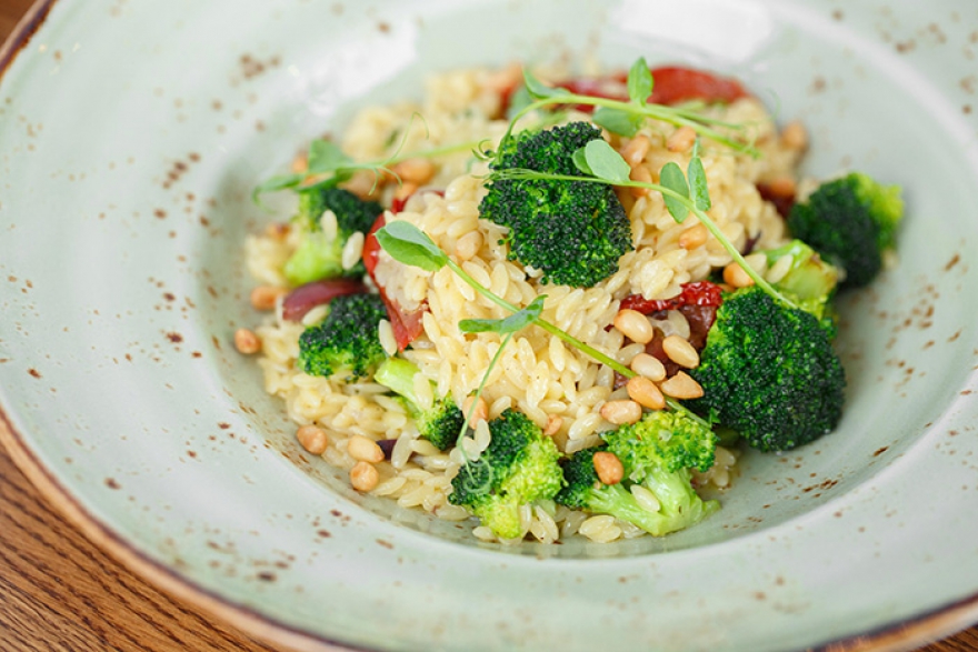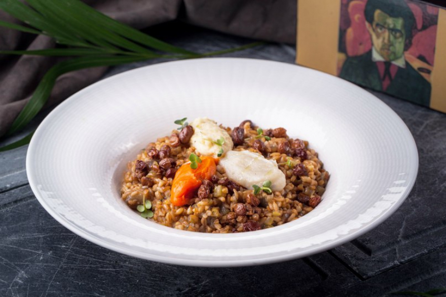 В «Макаронниках» небольшой, но убедительный список позиций: суп-пюре из чечевицы, ризотто примавера, греча с грибами и изюмом, бобовая котлета, фруктовый салат и морковный пирог.
