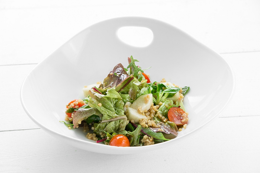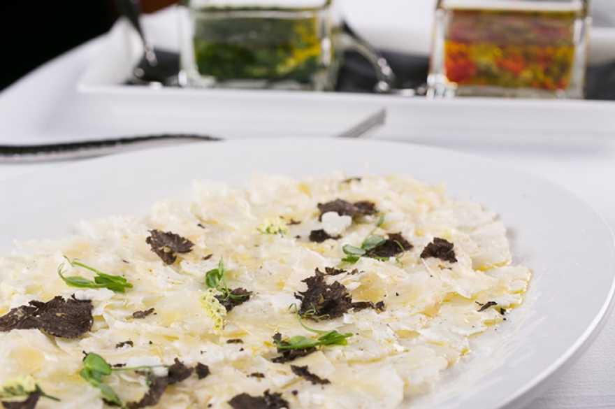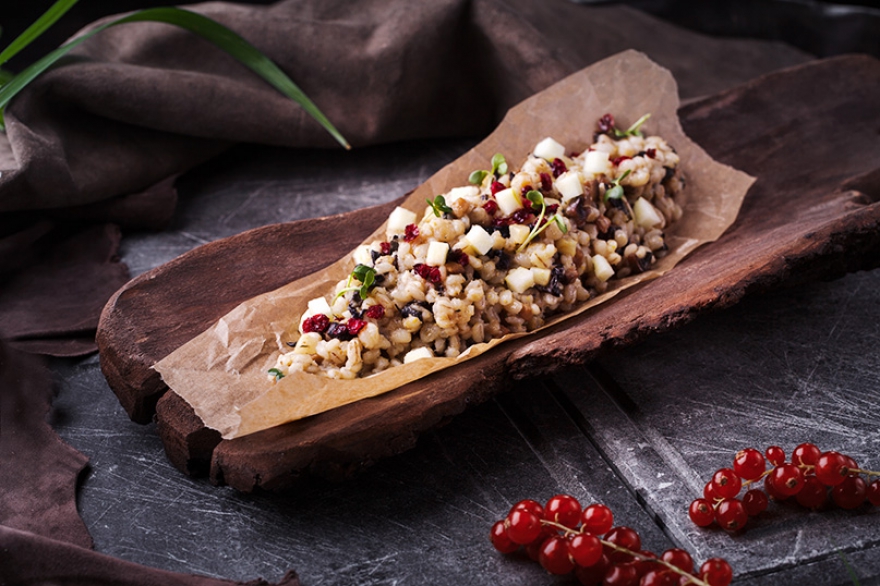 В ресторане «Бельвью Брассери» эффектно можно поститься с супом из белой фасоли с трюфельным маслом, запеченным баклажаном с овощами, томатами черри и кускусом, грушей-пашот, гранатово-банановым дуэтом и фруктовым салатом со свежими ягодами.