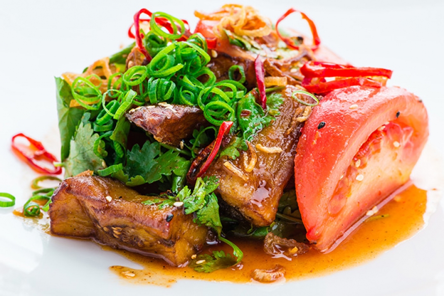 В «Баклажане» можно выбрать постное блюдо любой национальности: ролл в кунжуте с листьями салата лолло россо, огурцом, авокадо, паприкой и ореховым соусом, Традиционный грузинский пирог из слоеного теста с начинкой из запеченой фасоли, обжаренного лука и абхазских специй или реплику на русский медовик: медовые постные коржи, приготовленные на пару с прослойкой из абрикосового джема, грецкого ореха и сахарной пудры.