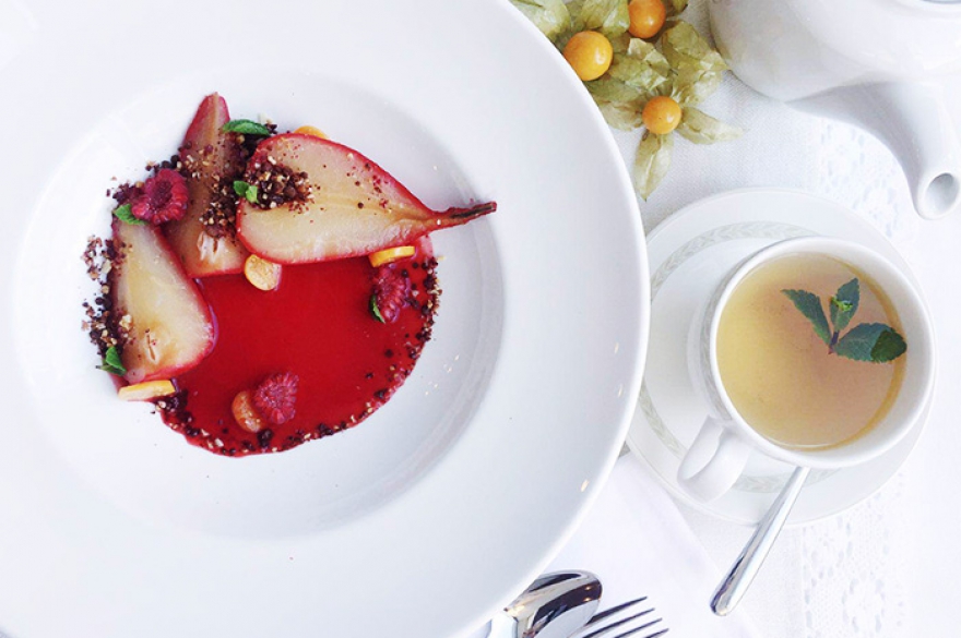В итальянском ресторане Amo Cucinare подают невероятной невесомости десерт: грушу готовят в сувиде в вишневом соке со специями и подают с малиной и физалисом. Идеален после особенно плотного горячего блюда, например, вегетарианской поленты с печеными перцами и грибами.