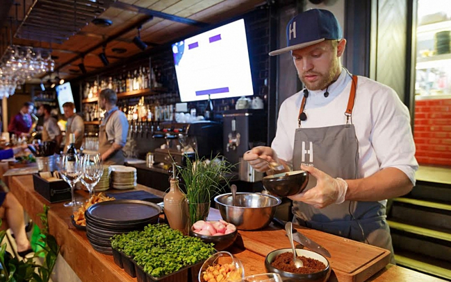 На сезон меню пополнил тартар из говядины с лисичками: к мраморному мясу и обжаренным на оливковом масле лисичкам с петрушкой и чесноком подают соус из гонгорзолы и пряную крошку из бородинского хлеба с трюфельным ароматом. Грибы для будущего блюда бренд-шеф ресторана Илья Бурнасов собирает сам.