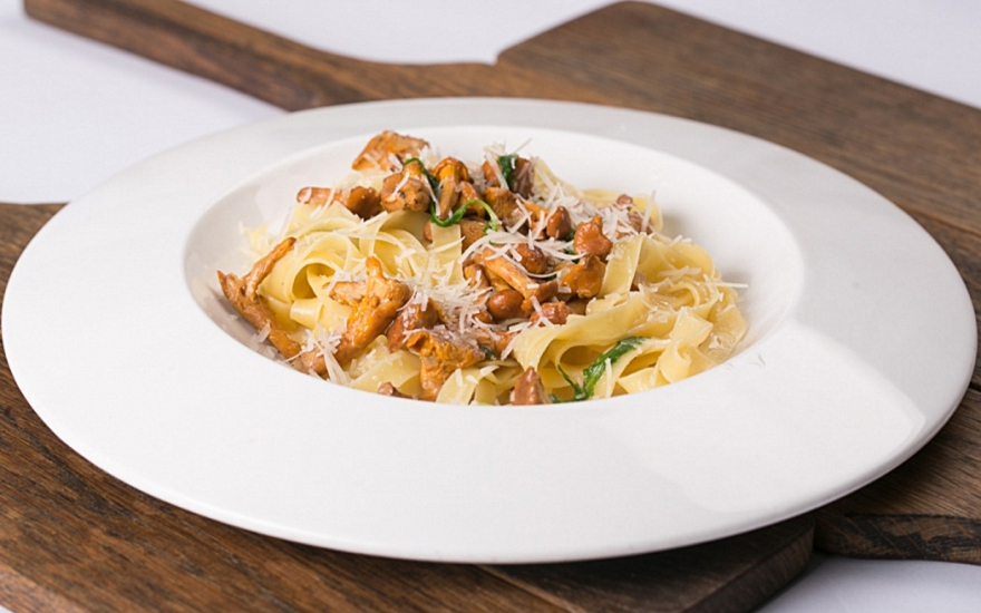В популярном у богемы кафе с лисичками с лисичками и сливочным соусом с перцем Lungo: с оливковым маслом и розовым перцем или с острым индонезийским перцем лунго под сливочным соусом — для адептов блюд в стиле spicy.