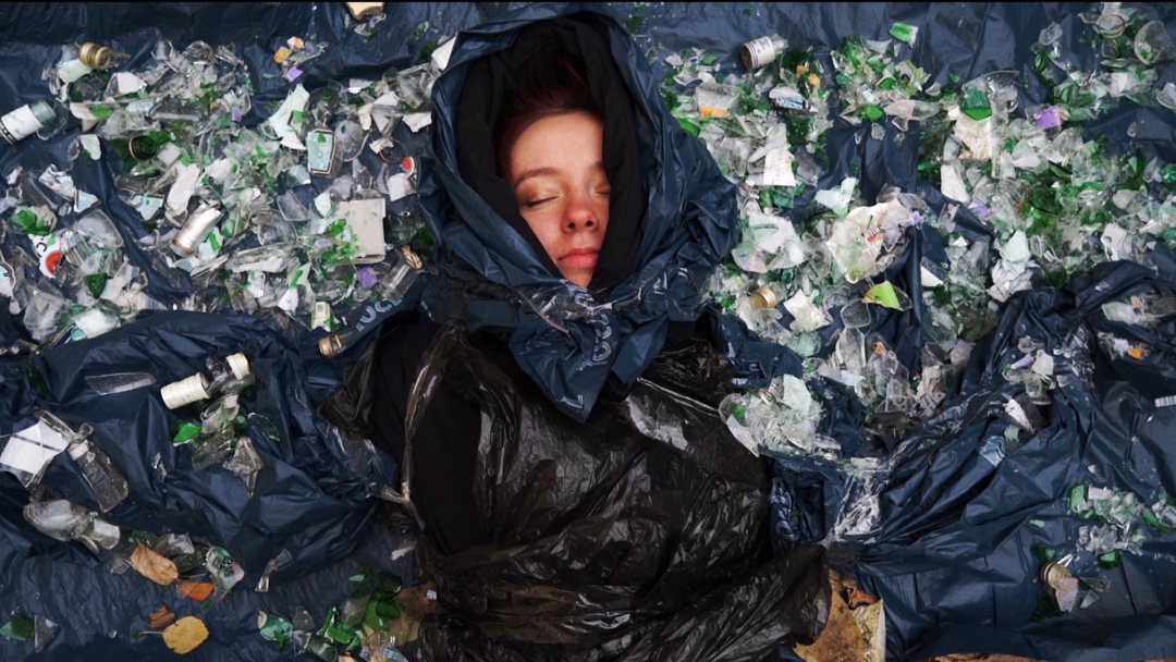 К началу акции Женя устроила перфоманс в мусорном мешке и сняла его на видео. Получилось вполне художественное высказывание.
