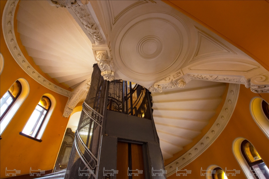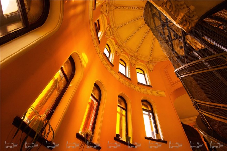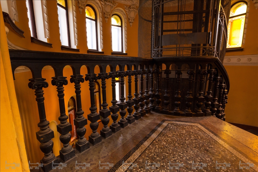 Дом по проекту архитектора Барановского был построен в 1892 году по заказу одной из богатейших купеческих семей России. Исключительная по оригинальности спиральная лестница, опоясывая круглую шахту лифта, объединяет площадки центрального и дворового корпусов. Вестибюль вполне соответствует пышно оформленному фасаду: он украшен массивной лепниной, резной балюстрадой и витражами.