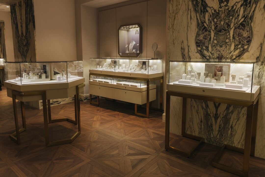 Новый магазин, расположенный на первом этаже 3 линии выполнен в фирменном лаконичном дизайне бренда. В интерьере, который решен в стиле русского модерна, много каррарского мрамора и элементов из латуни. Мягкий рассеянный свет выгодно подчеркивает украшения и располагает к неспешному общению. В день открытия вход в салон украшали белые весенние цветы — символ нового начала и вдохновения.
