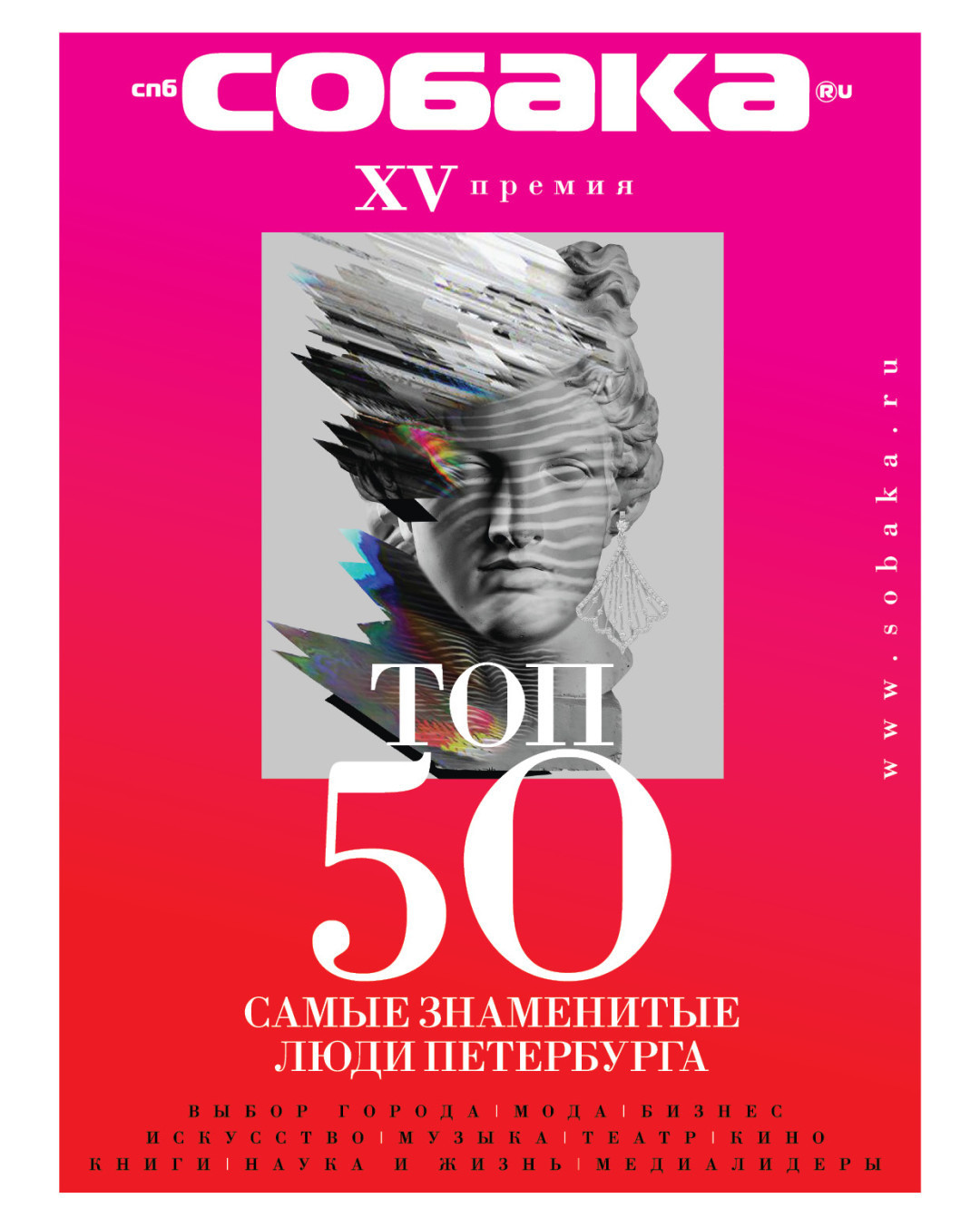 Ежедневно, начиная с 28 мая, мы объявляем на сайте sobaka.ru лауреатов каждой из 9 номинаций этого года: «Мода», «Бизнес», «Искусство», «Наука и Жизнь», «Кино», «Музыка», «Книги и Тексты», «Медиалидеры» и «Театр». В прошлом году мы навсегда отменили онлайн-голосование и выбор победителей из номинантов премии. Теперь каждый герой списка «ТОП 50. Самые знаменитые люди Петербурга» — победитель.