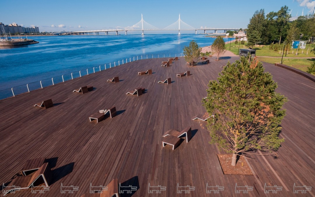 К чемпионату мира по футболу вдоль Малой Невки и Южной дороги на Крестовском острове в городе гранитных набережных — величественных, но недружелюбных по отношению к желанию обычного человека присесть-прилечь — была создана прогулочная зона, покрытая деревянным (!) настилом с общедоступными спортивными тренажерами, комфортными скамейками и даже первыми со времен Петра Великого шезлонгами. Довершает все это великолепие, кажется, единственный в городе цивилизованный пляж. Компания «А2 ТЭК» реализовала проект в рекордные сроки — за два месяца. У новой набережной сразу появился свой фан-клуб круглогодичных почитателей всех возрастов и социальных статусов.