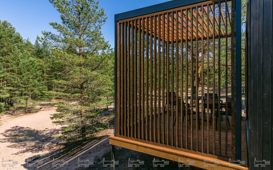 Модули изготовили на производстве и доставили на площадку в высокой степени готовности — уже со всей инженерией, большей частью отделочных материалов, сантехническим оборудованием. Их необходимо было только подключить к сетям, расставить мебель — это первый и пока единственный на территории России пример использования модульной технологии, которая позволила минимально побеспокоить природу во время строительства и сохранить как можно больше сосен. Части комплекса расположены таким образом, чтобы из каждого номера открывался вид на берег, а присутствие соседей ощущалось как можно меньше. А весь интерьер номера строится на одном главном элементе — природе за панорамным окном. Контекст северной карельской природы был определяющим для нас при выборе эстетических решений проекта. Лучшим отзывом для отеля является заполняемость — а она здесь чрезвычайно высокая. Значит, у людей есть запрос и на такой формат отдыха, и на такую архитектуру.