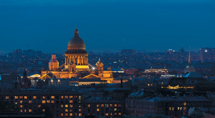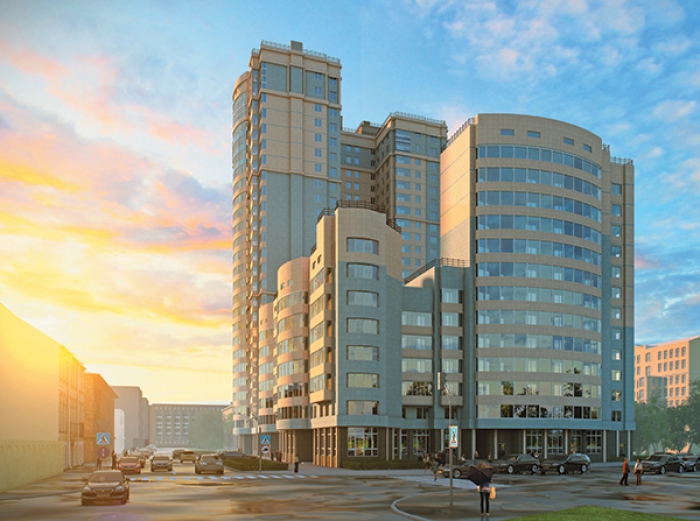 Высотный жилой комплекс с видами на Московский проспект и петербургский центр.