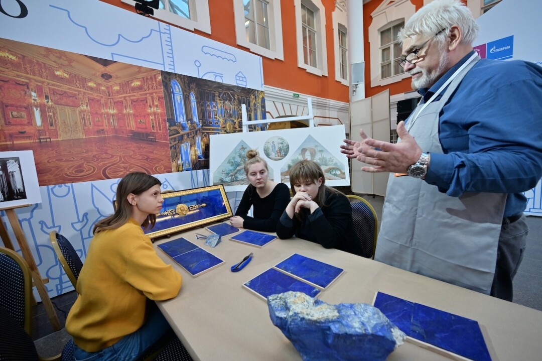 ПАО «Газпром» уже более 10 лет реализует в Санкт-Петербурге множество культурно-просветительских и образовательных инициатив, а также проектов в сфере благоустройства городской среды. Проект «Друзья Петербурга» — логичное продолжение процесса. Его миссия — содействие городу в сохранении культурного наследия и исторической идентичности в современном мире. Важная часть проекта — поддержка инициатив в сфере профессиональной подготовки студентов и молодых специалистов в области реставрации. Она реализована через «Наставничество» — программу профессиональных мастер-классов для студентов профильных вузов и колледжей на платформе крупнейших реставрационных организаций. Именно с мастер-классов, первый из которых состоялся в ГМЗ «Царское Село», и стартовал два года назад весь проект. Тогда художники-реставраторы Царскосельской янтарной мастерской показали будущим коллегам, как идет кропотливый процесс воссоздания каминных канделябров для Лионского зала. За эти два года мастер-классы по программе «Наставничество» стали регулярными.