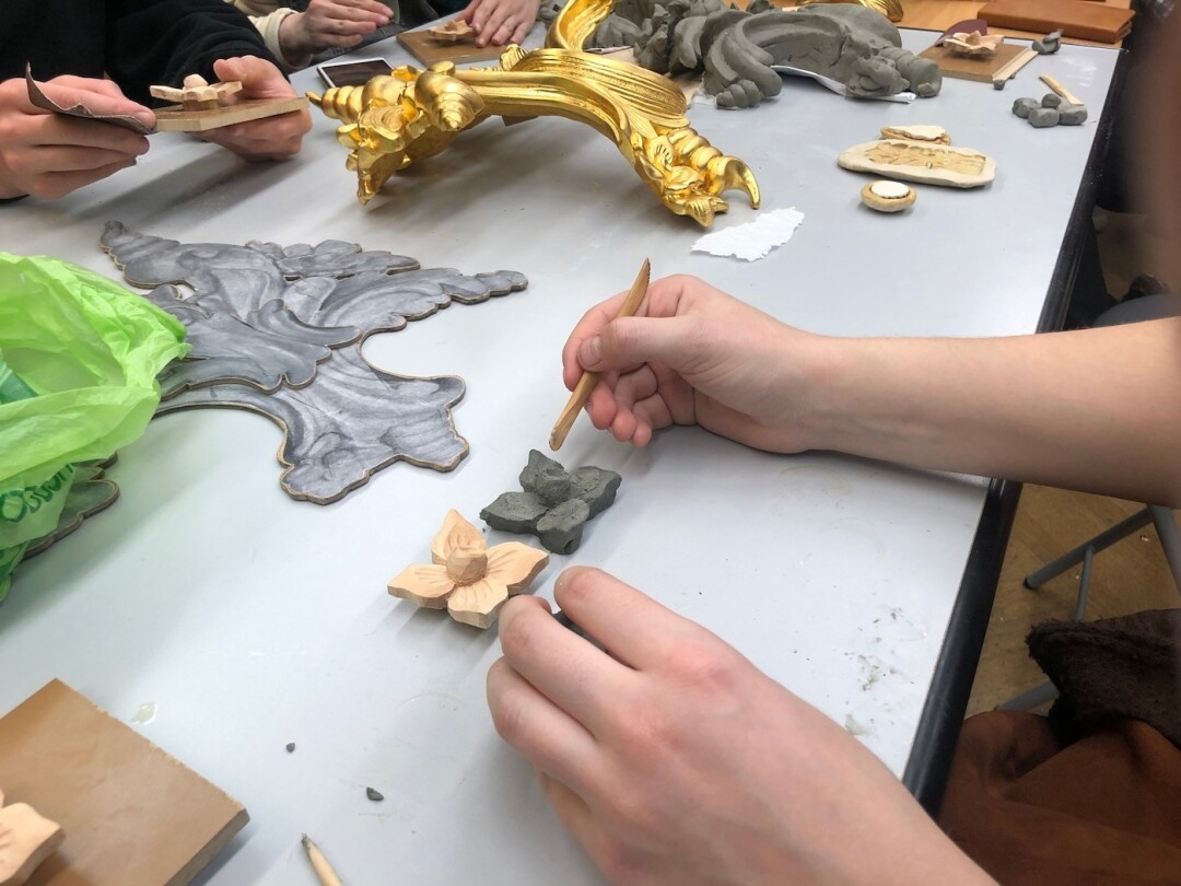 Проект объединил много мастерских в одном месте, и это помогает в выборе специализации. Сейчас вот мы реставрируем лепнину и видим живой пример того, как это делают более опытные студенты и настоящие мастера.