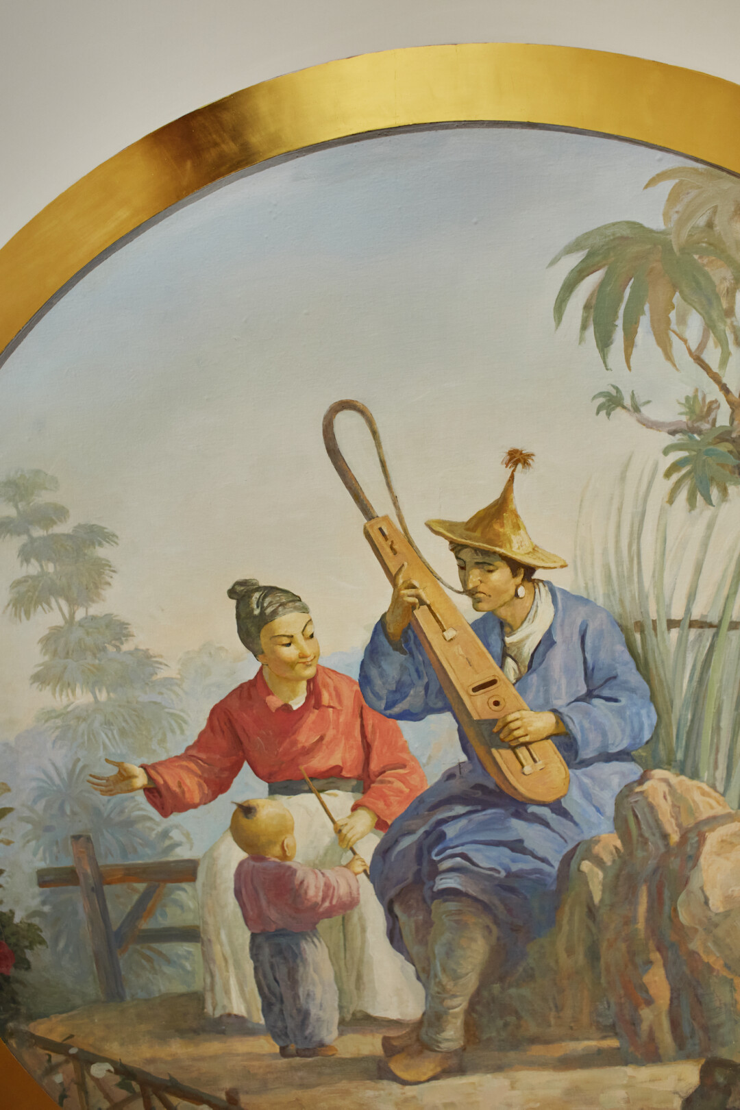 А вот с Китайским залом вышло по-другому. Сохранились интерьерные акварели, на которых видна изначальная роспись плафонов, и мы приняли решение воссоздавать отделку на первоначальный период .