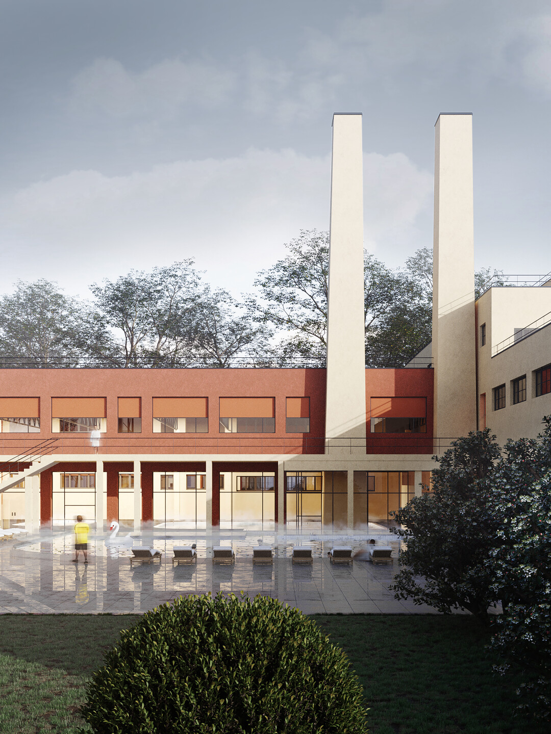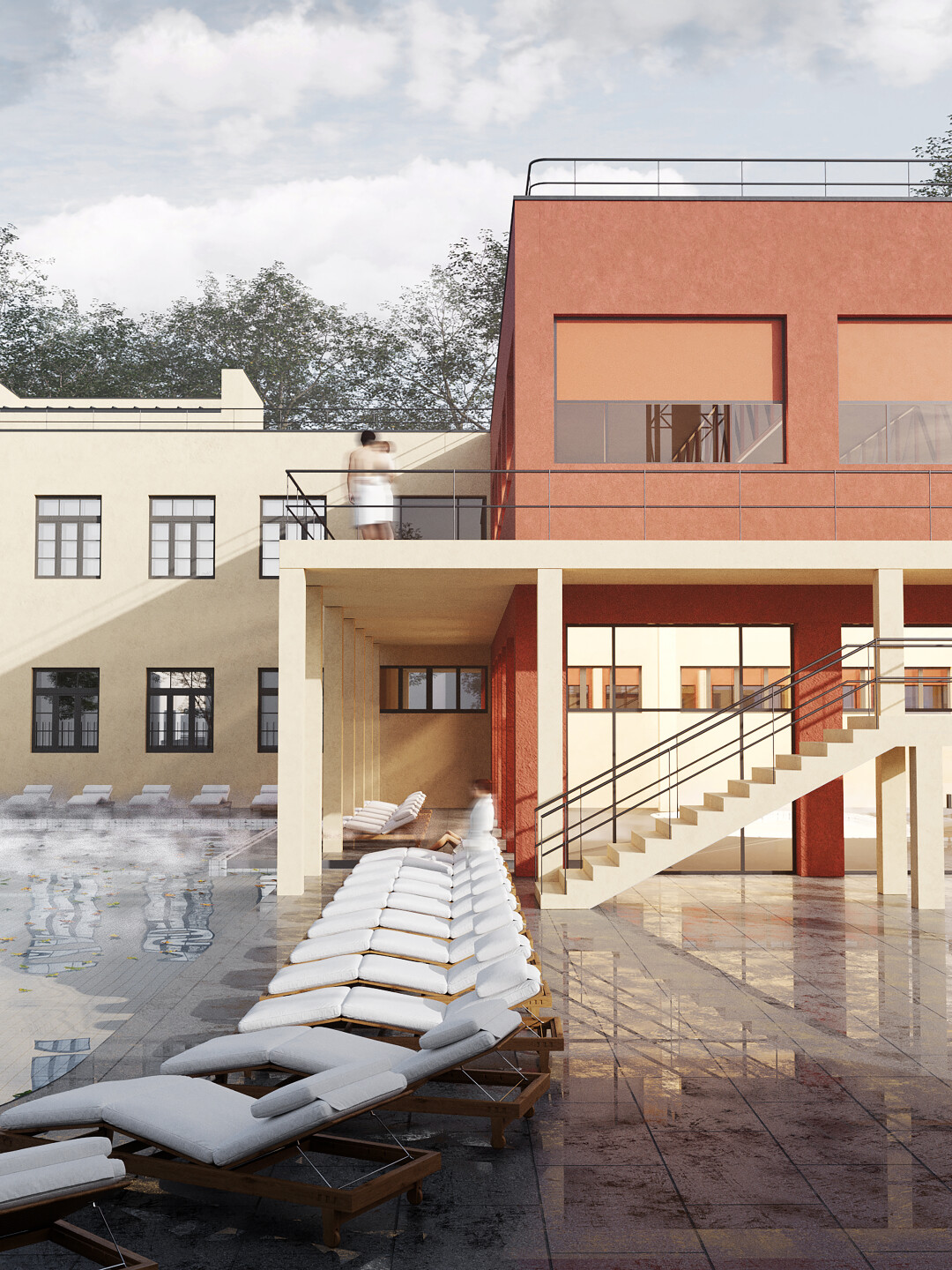 «В настоящее время наша команда разрабатывает проект реставрации бань с целью восстановления их первоначального облика. В основе проекта — возвращение баням их исторической функции: в комплексе снова будут мыльные, банные, бассейны и открытые купели. В рамках проекта планируется восстановление конфигурации исторических кровель и фасадов здания, сохранение элементов, определяющих идентичность места, включая композиционные решения и объемно-пространственную структуру, с интеграцией современных функций», — рассказала команда ООО «НИиПИ Спецреставрация».