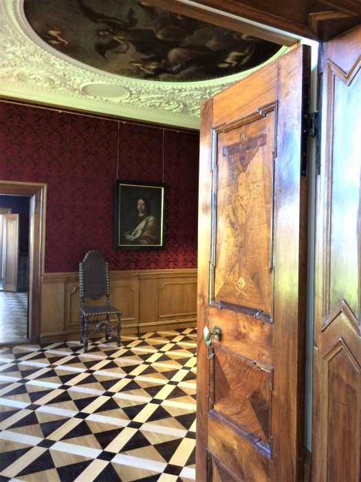 Здесь сохранилась роспись начала XVIII века маслом по дереву. Это единая конструкция, которую трогать было очень опасно. Реставраторы сделали укрепление и зачистку. Комната уникальна еще и своей историей, ее называют «Кабинетом редкостей». Здесь было положено начало Кунсткамере.
