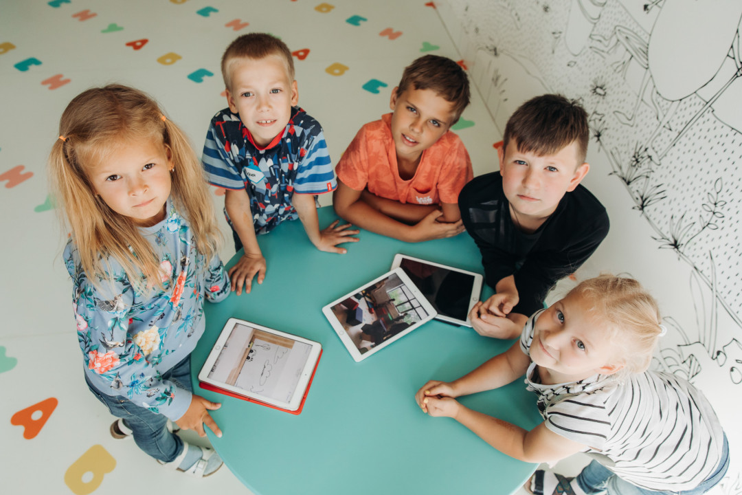 Планшеты активно используются и в мультипликационном классе. Здесь все, кому больше 7 лет, знакомятся с основными этапами создания мультфильма: сценарий, раскадровка, работа художника, аниматора, оператора, режиссера, озвучивание и монтаж. Без планшетов не обойтись и в кружке математики и программирования SHIFT.