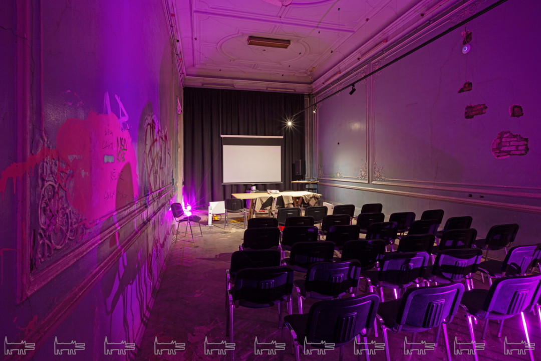 В левом крыле на втором этаже, где уже прошла ярмарка современного искусства, появятся рестораны высокой кухни — нам бы хотелось, чтобы прекрасные дамы также восходили по роскошной парадной лестнице, как и в XIX веке. Также здесь будет работать галерея современного искусства, двухэтажный бар, во дворе — спик-изи и винные бары. В театральном зале разместится лекторий, там есть сцена.