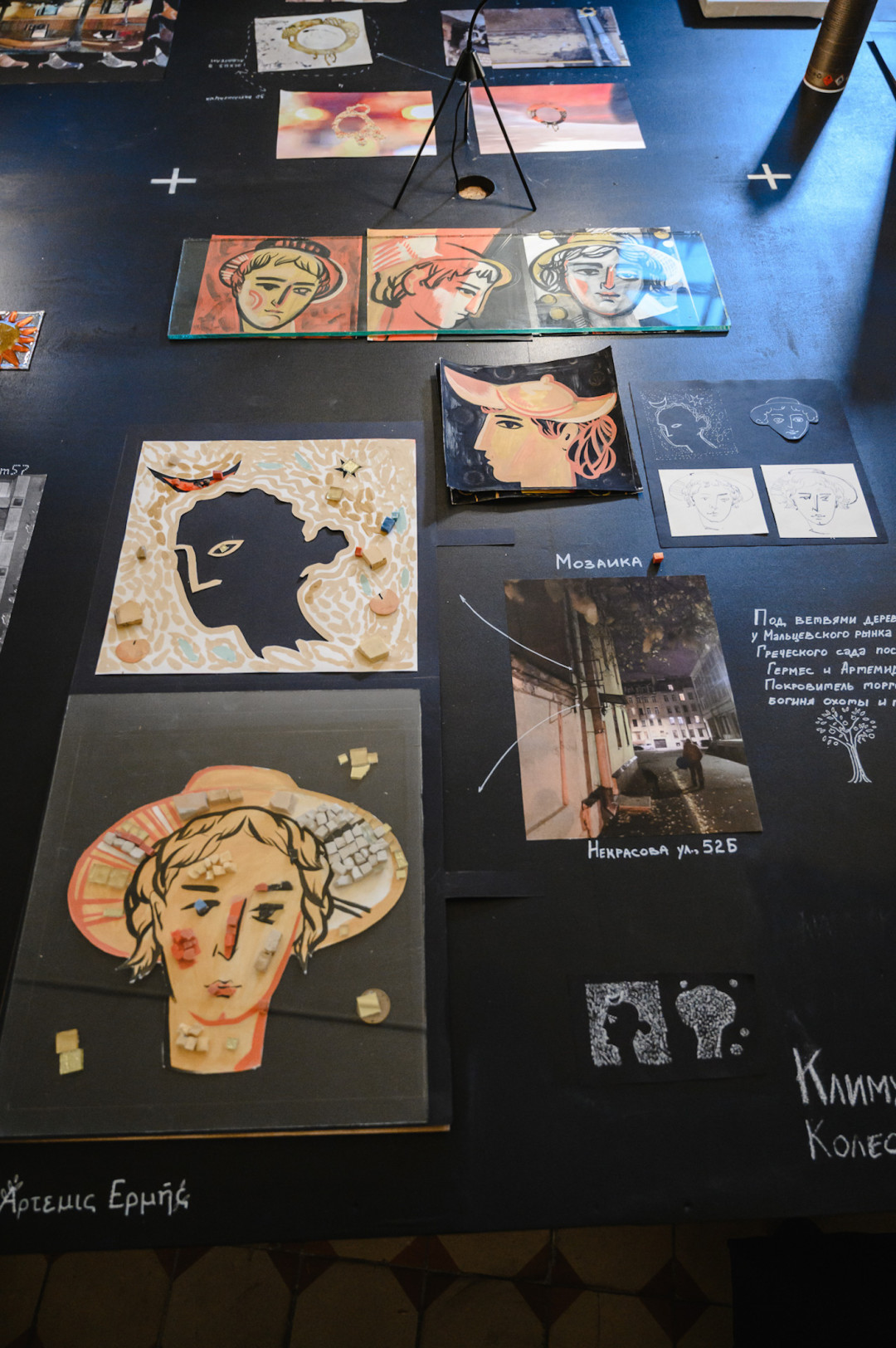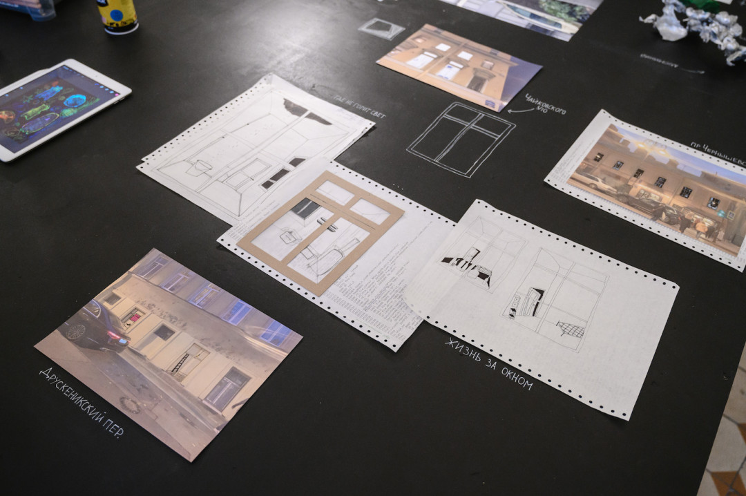 Благодаря мощному творческому импульсу очень быстро появились идеи и наброски. И уже на следующей встрече через три дня Покрас Лампас вместе с кураторами проекта Анной Заведий и Кириллом Спассковым внимательно разобрали все презентации, вместе размышляя, что удалось, а над чем надо еще потрудиться.