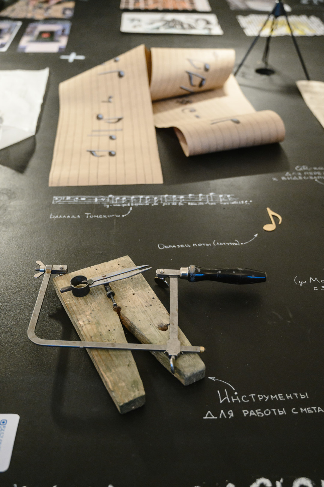 Вадим Красюков, студент 1-го курса магистратуры кафедры художественной обработки металла Академии Штиглица, рассказывает, что идея проекта у него появилась во время первого мастер-класса, когда участники вместе с Покрасом Лампасом исследовали исторический центр. Дом на пересечении Моховой и улицы Чайковского, давно закрыт сеткой — начавшаяся реконструкция особняка Ламздорфа законсервирована. На ней, по задумке автора, должна появиться музыкальная фраза из «Пиковой дамы».
