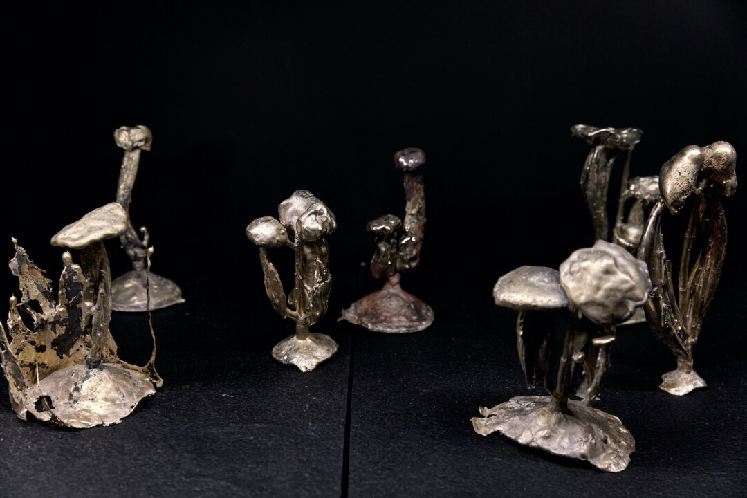 Екатерина Федотова, студентка 1-го курса магистратуры кафедры художественной обработки металла, при создании своего проекта обратилась к корням, а точнее — к грибницам. И отнюдь не к абстрактным, а вполне достопримечательным: композиция из латунных грибов — повод рассказать о видовом разнообразии, представленном в Летнем саду.