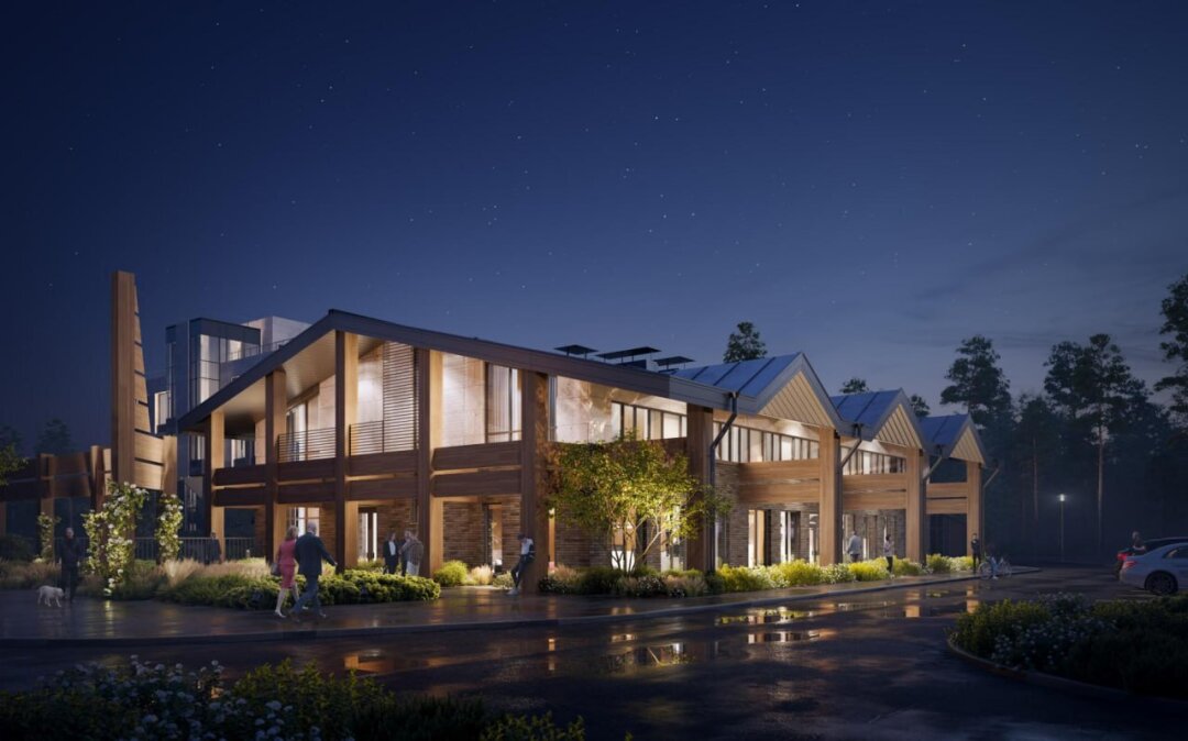 В проекте предусмотрена по-скандинавски минималистичная архитектура. На территории санаторного комплекса высадят пейзажный парк с зонами для отдыха и медитаций, появятся спортивная и детская площадки с игровым оборудованием. Проект также украсит арт-объект под открытым небом – кинетическая скульптура петербургских скульпторов Владислава Муханова и Ивана Зубарева. Примечательно, что камни, использованные при изготовлении арт-объекта, взяли из того же месторождения в Ольгино (Конная Лахта), откуда в свое время доставили гром-камень для «Медного всадника» — памятника Петру Первому на Сенатской площади в Петербурге. Завершение строительства запланировано на 2028 год.