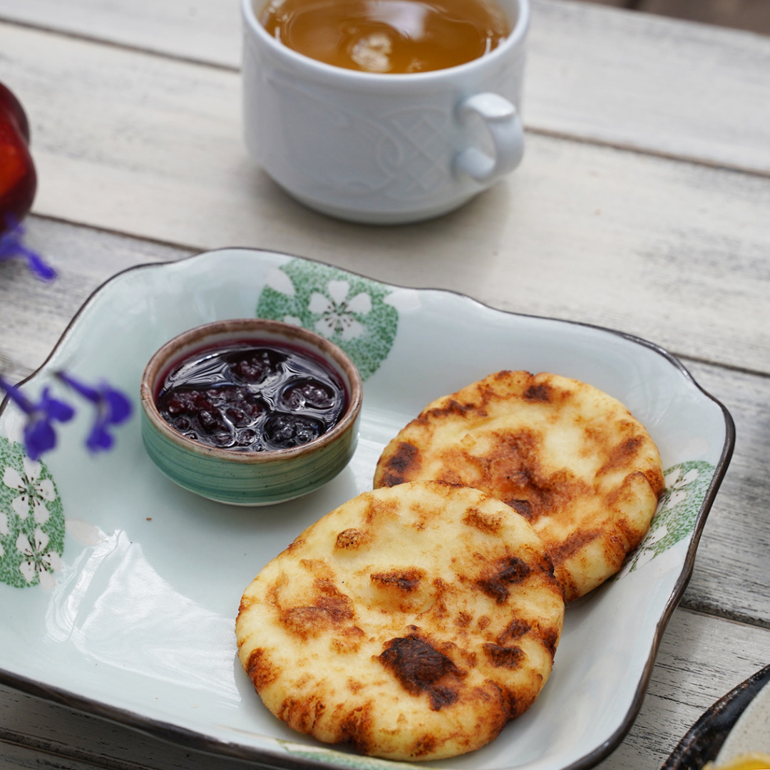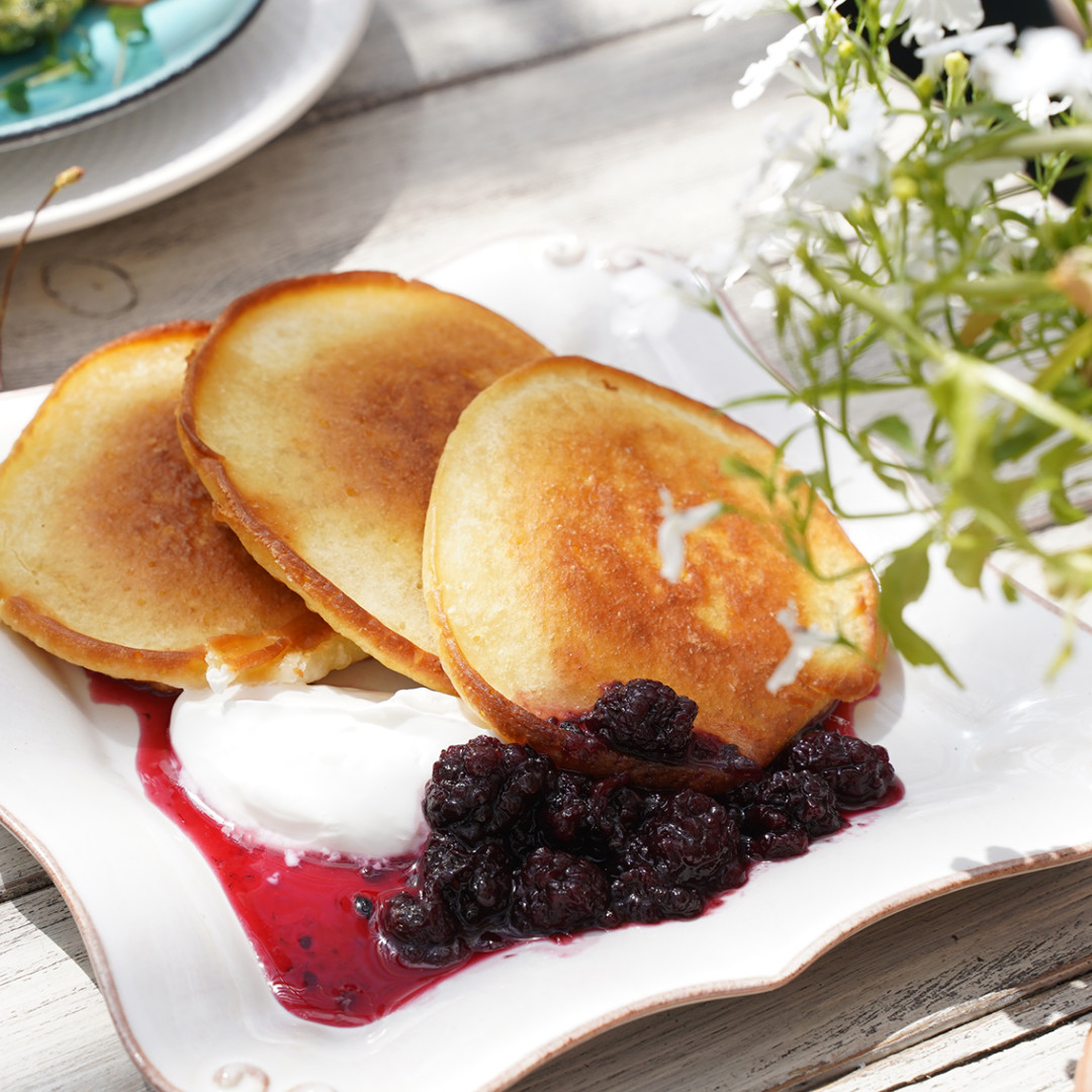 Прекрасным завершением завтрака станут нежнейшие сырники из рикотты и пышные оладьи с ежевичным вареньем.