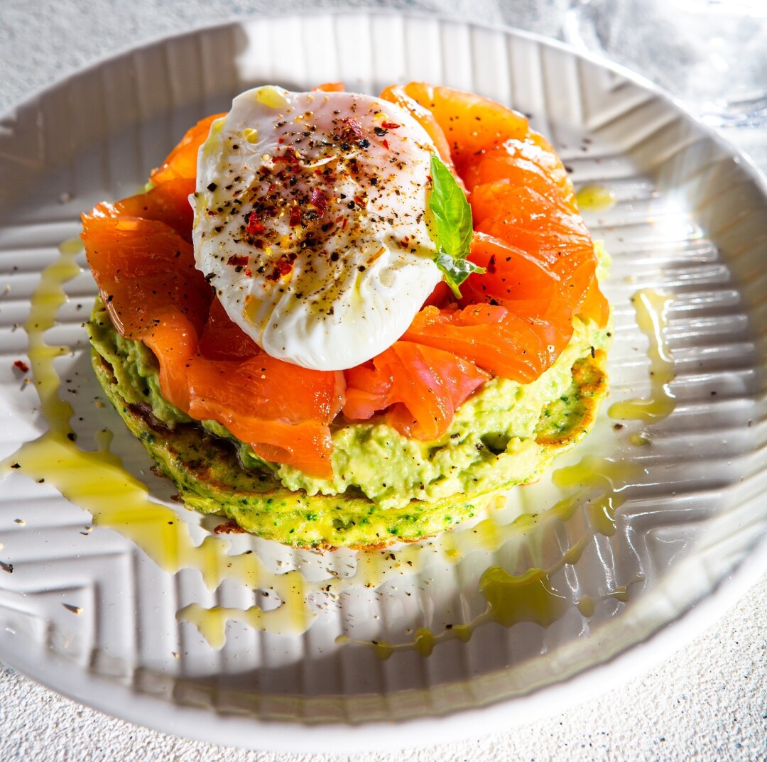 Драники из брокколи с яйцом пашот и лососем от Дмитрия Голенина