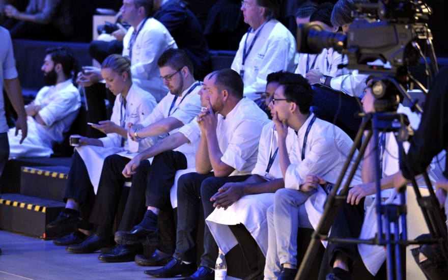 Победителей регионального этапа ждут на финал в Милане — и это уже само по себе гран-при. В октябре 2016 года двадцать участников под присмотром своих менторов выступали в два дня. У каждого — стерильно-белый бокс-кухня, которую снимает одновременно камер больше, чем сцену в душе из «Психо» у Хичкока. Саспенса тоже хватает, но такого, в духе документальных эпопей Белы Тарра — пять часов невключенного наблюдения за тем, как финалисты с помощниками и менторами трудятся над десятью порциями своего коронного блюда. Вот новозеландку Лесли Хотто сердечно приобнимает ее наставник Питер Гилмор, пока та суетится над картофельными ньокками c грибами, кедровыми орешками и трюфелем, вот в боксе у испанского повара Дэвида Адреса Морена, которого патронировал сам Андони Луис Адурис из Mugaritz, все работают с хладнокровием отряда «Дельта». Представитель Венгрии Родриго Сантос выбрал готовить свиные щеки в карамелизированным пюре из цветной капусты со свекольным тортеллини и изюмом и привез для подачи костяные рога — окей, очень по-восточно-европейски. Наш финалист — петербургский повар Хезрет Бердиев из Four Seasons, его ментор — звездный шеф Владимир Мухин, чей московский ресторан White Rabbit входит в Word's 50 Best Restaurants. Менторам не разрешено притрагиваться к продуктам, но Мухин, казалось, способен дирижировать кухней как ансамблем: блюдо «Лето в Сибири» — оленина с барбарисовой глазурью и елово-сельдереевой эспумой в сопровождении полбы с квасом — было подано и презентовано отлично.