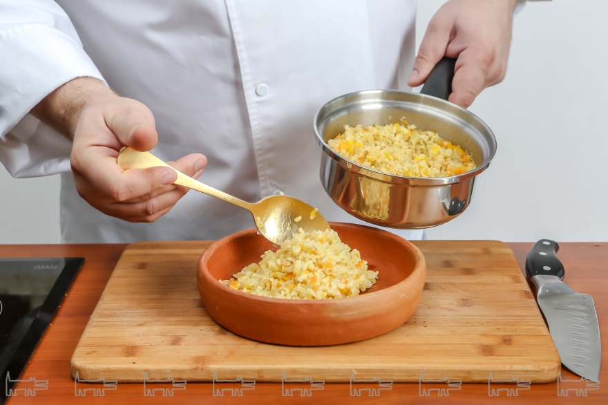 Сезонные овощи — главные источники витаминов. Болгарский перец, лук, морковь, сельдерей первой свежести! В период межсезонья важно не только насыщать организм полезными веществами и микроэлементами, но и очищать его от токсинов и шлаков. Здесь нам помогут крупы и злаки: ячмень, овес, пшеница, булгур, рис. А что будет, если соединить булгур с овощами? Правильно — вкусное и питательное блюдо золотисто-оранжевого цвета! Ризотто из булгура с овощами приготовить очень просто, нам нужно: