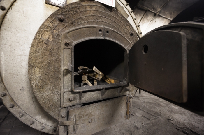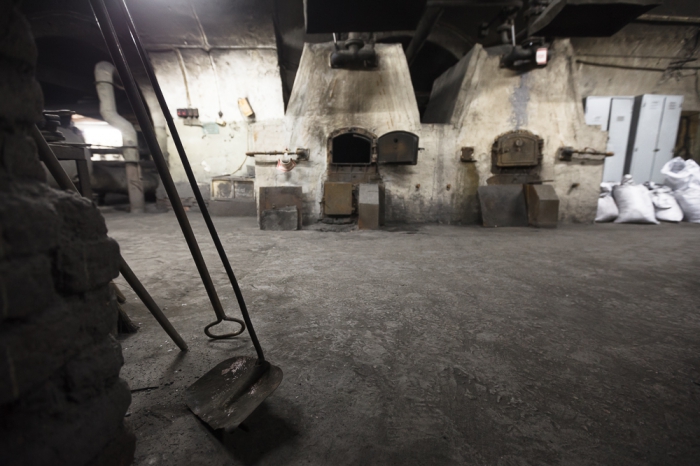Котельная в полном порядке и без перебоев отапливает здание. Принцип работы кочегарки довольно прост. В подвалах под зданием стоят огромные печи, а если говорить правильно — котлы. В отопительный сезон их растапливаются и греют воду, которая (уже нагретая) циркулирует по зданию Биржи. Работа кочегара заключается в том, чтобы вовремя закидывать уголь в печку и следить за давлением и температурой воды. В холодные дни на отопление здания уходит до двух тонн угля.