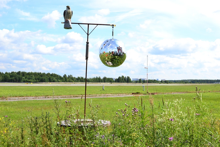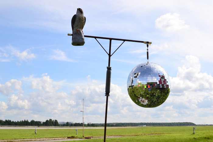 Кроме механический приспособлений, используют и самые, казалось бы, банальные чучела и диско-шары. Последних расположено вдоль поля 10 штук — переливаясь, они могут напугать свечением стрижей и соек. Правда, и притягивают любящих все блестящее ворон. Сотрудники служба уверены, что ни один из методов не может быть идеальным, поэтому используют все в комплексе, комбинируя последовательность приемов, тасуют их и сами изобретают новые.